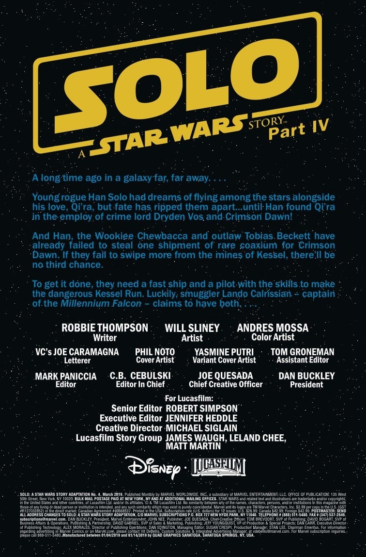 Solo: A Star Wars Story Adaptation #4 is out on January 30th, priced $3.99.