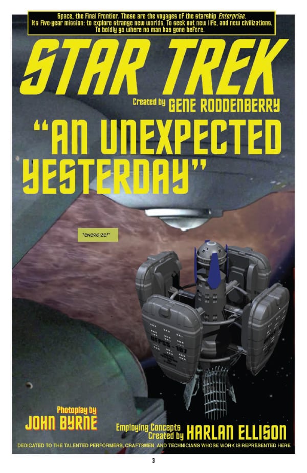 IDW Publishing releases John Byrne’s latest Star Trek: New Visions photoplay An Unexpected Yesterday on Wednesday, and you can take a look at a preview here…