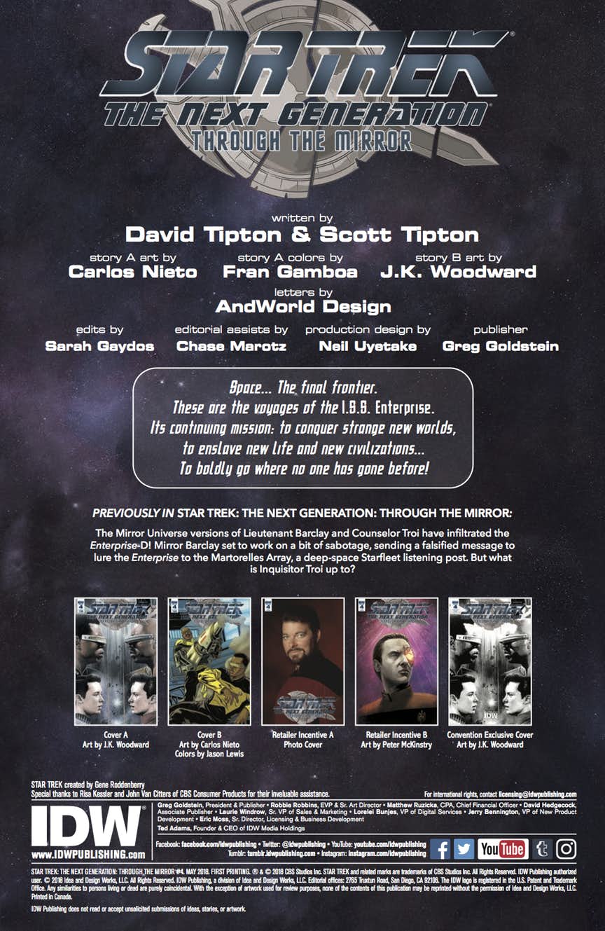 Star Trek: The Next Generation: Through The Mirror #4 is out on May 23rd, priced $3.99.