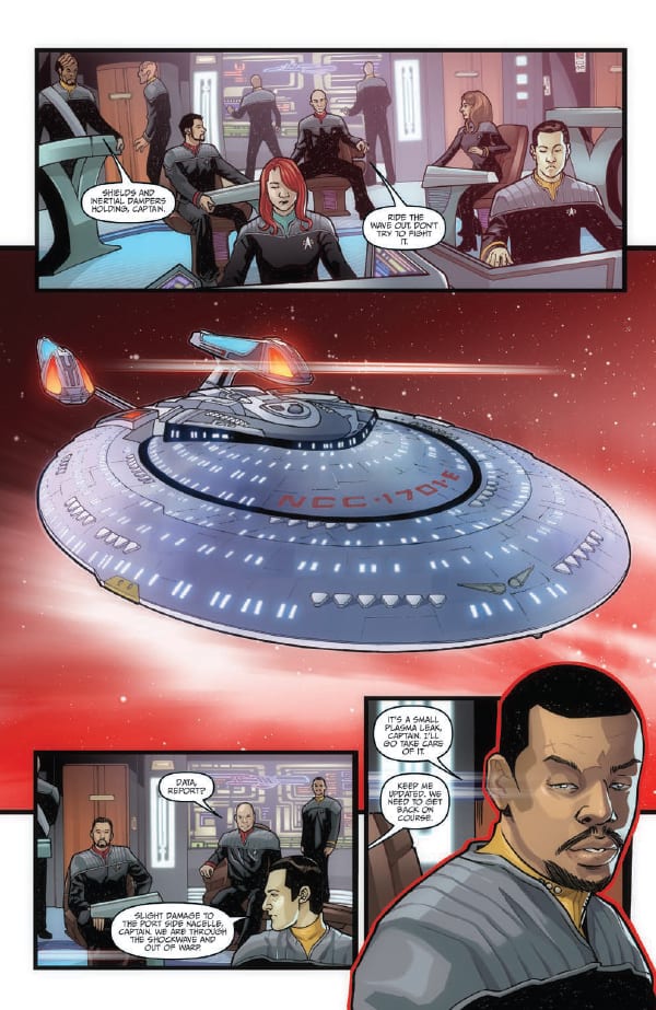 IDW Publishing launches Star Trek: The Q Conflict this Wednesday, bringing together Captains James T. Kirk, Jean-Luc Picard, Kathryn Janeway, and Benjamin Sisko for a new six-issue limited series; take a look at a preview of the first issue here…