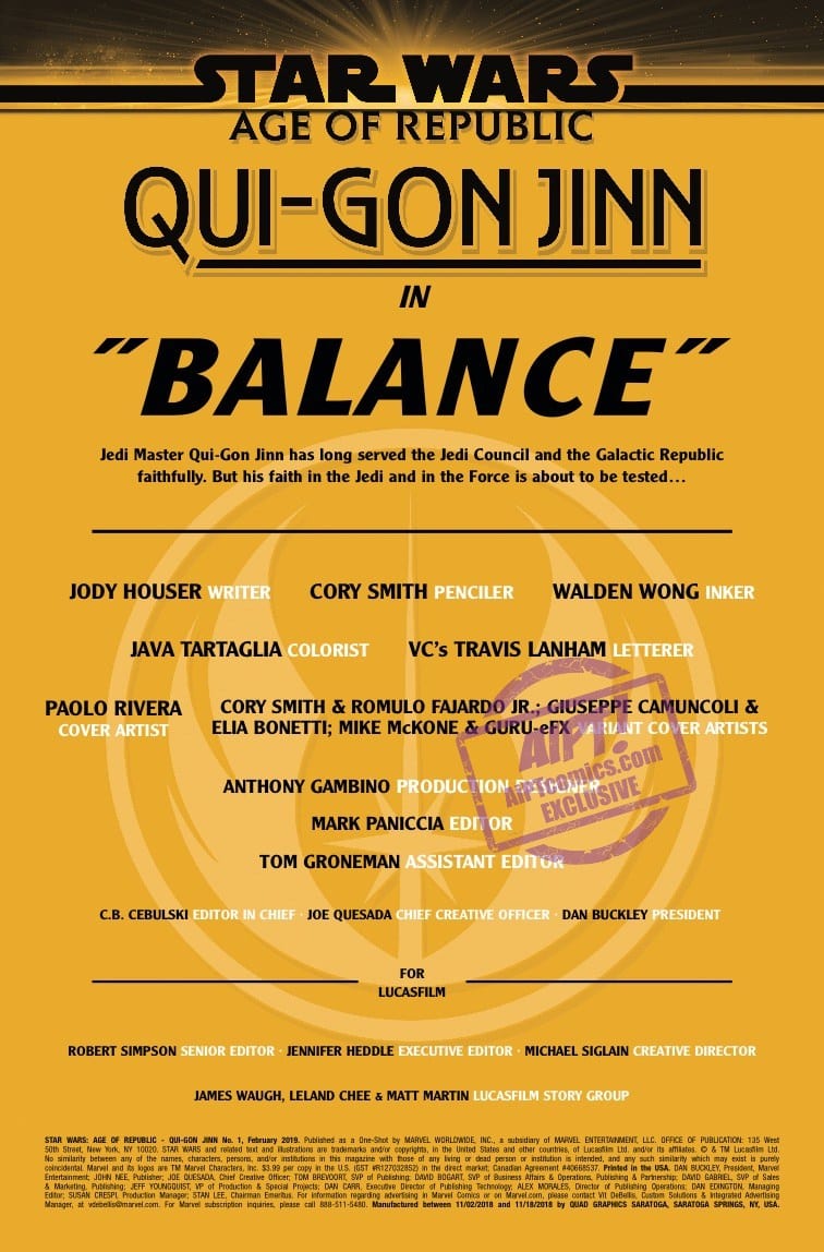 JEDI ORDER…OR CHAOS? Considered one of the greatest Jedi Knights or the one who led them to their doom, maverick QUI-GON JINN is one of STAR WARS’ most controversial heroes. The JEDI MASTER is known to bend the rules and it’s gotten him into plenty of trouble with the COUNCIL. Now, in the face of a mission that goes awry, he’s forced to confront his conflicting beliefs. What will Qui-Gon uncover about his loyalty to the Jedi vs his loyalty to the FORCE? Guest-starring MASTER YODA!