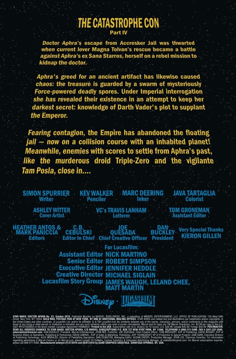 Star Wars: Doctor Aphra #23 is out on August 22nd, priced $3.99.