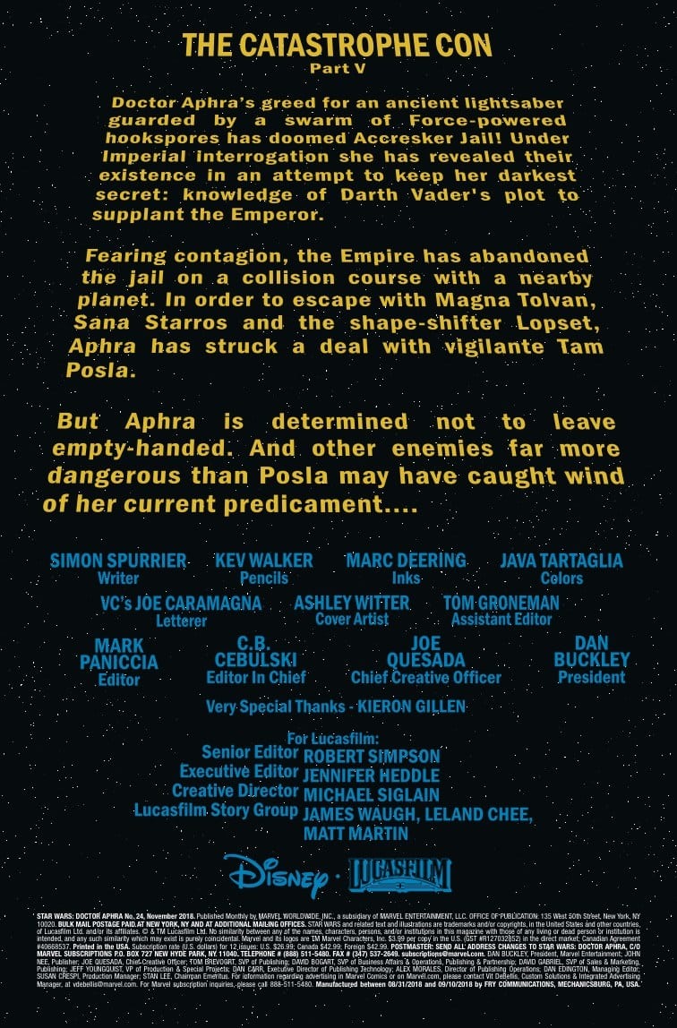 Star Wars: Doctor Aphra #24 is out on September 26th, priced $3.99.