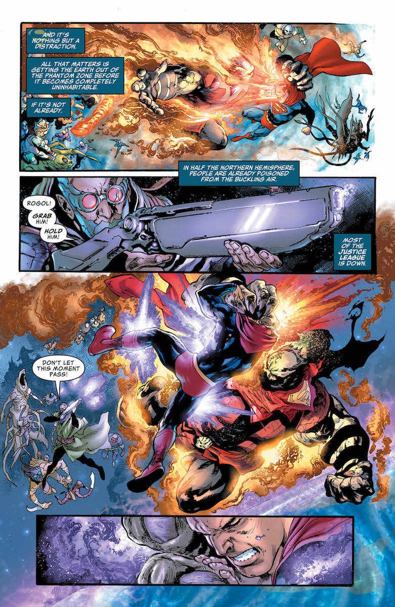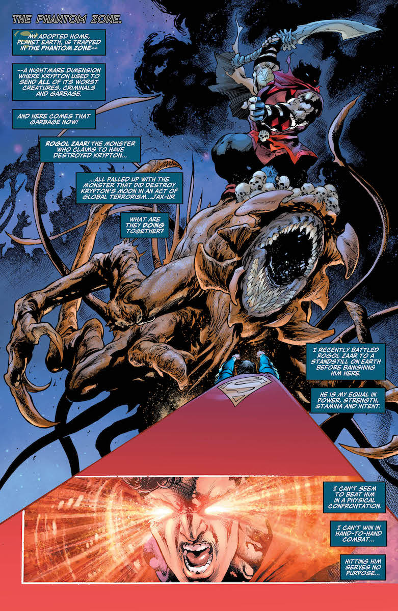 As Superman fights to protect the world from Rogol Zaar and the Kryptonian convicts trapped inside the Phantom Zone, the greatest minds on Earth devise a risky plan to return the planet from the deadly prison. With the Earth continuing to crack and crumble and its greatest heroes fall, can the Man of Steel hold the line and give his adopted world a chance to escape?