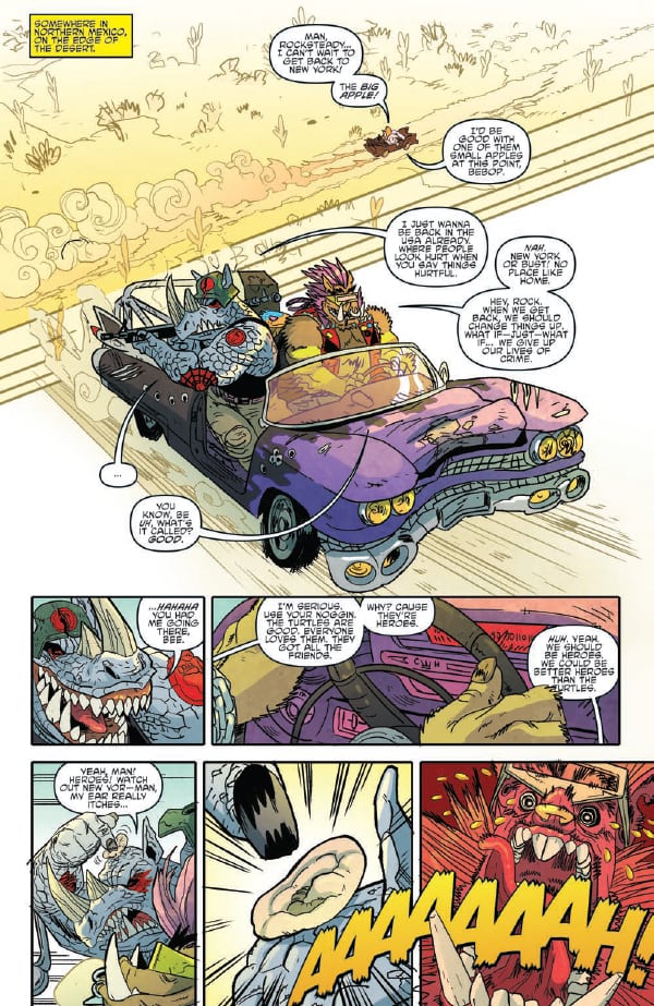 IDW launches its new Teenage Mutant Ninja Turtles miniseries Bebop & Rocksteady Hit the Road! this Wednesday, and we have a preview for you here; take a look…
