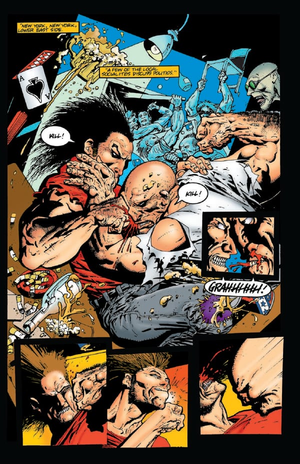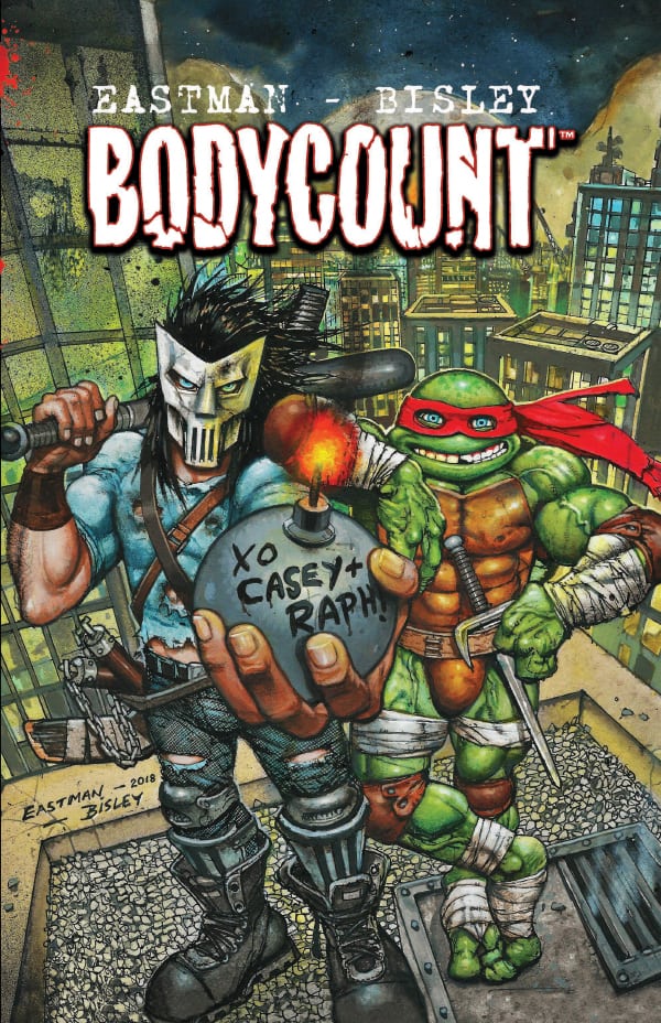 Inspired by the magazine Heavy Metal and the films of John Woo, creators Kevin Eastman and Simon Bisley present a much darker take on the Teenage Mutant Ninja Turtles, spinning a pulse-pounding yarn of over-the-top action and more than a bit of the old ultraviolence. In gritty 1990s New York, our boys Raphael and Casey are swept up into an international murder/revenge/assassination plot, complete with gangsters, thugs, cops, cyborgs, machine guns, and (of course) hockey sticks. Don’t miss what might just be the longest-running gunfight in comic book history! Collects Bodycount issues #1-4.