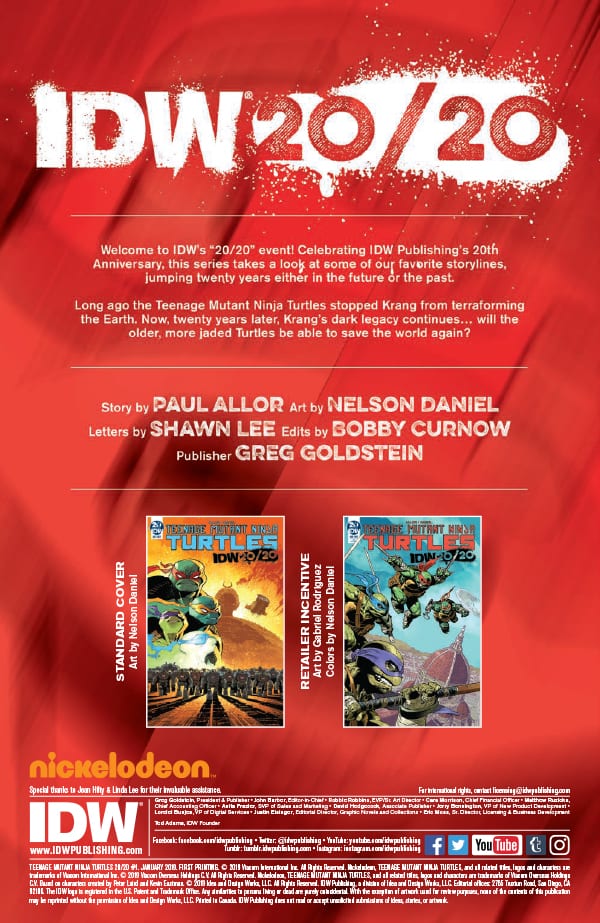 Teenage Mutant Ninja Turtles: IDW 20/20 is out on Wednesday, January 16th, priced $4.99.