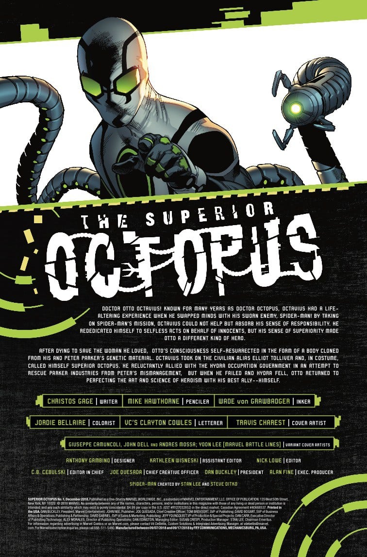 DOC OCK-TOBER STARTS HERE IN THIS SPIDER-GEDDON TIE IN! Doc Ock has set up shop as San Francisco’s protector, but you won’t believe his methods. Some of Otto Octavius’s new super hero strategies may make Spider-Man regret letting him free, but the good doctor swears that he’s the SUPERIOR OCTOPUS! Chistos Gage (AMAZING SPIDER-MAN) and Mike Hawthorne (Deadpool) will change the way you look at super hero comics.