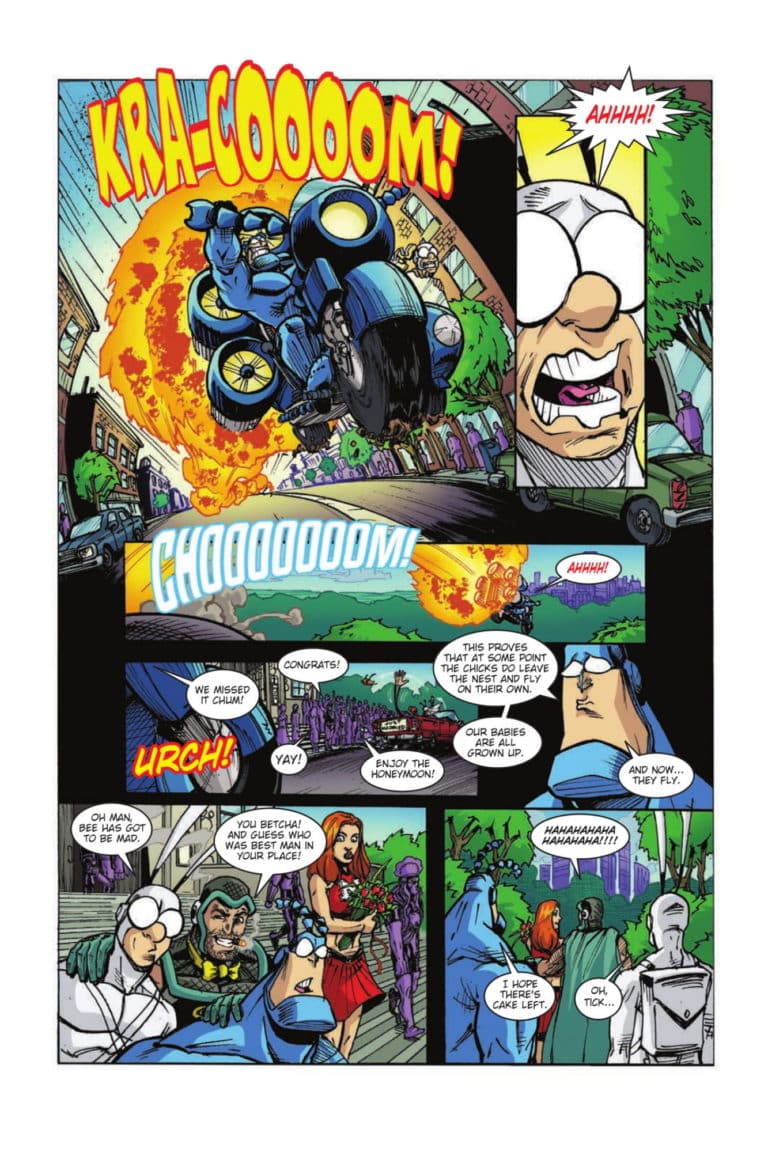 The Tick is back for his 10th Free Comic Book Day featuring an ALL NEW story by Ian Nichols! The Tick has always been one of the most popular FCBD comics! Dave has the largest collection of Tick & Arthur memorabilia in the world—except the most rarest “items” of all….Tick & Arthur themselves! Featuring the return of the fan favorite Tick Cycle with its legendary “unnecessary rockets”! The Tick is one of the most successful and longest-running independent comics ever! SPOOOOOOOOOOOON!