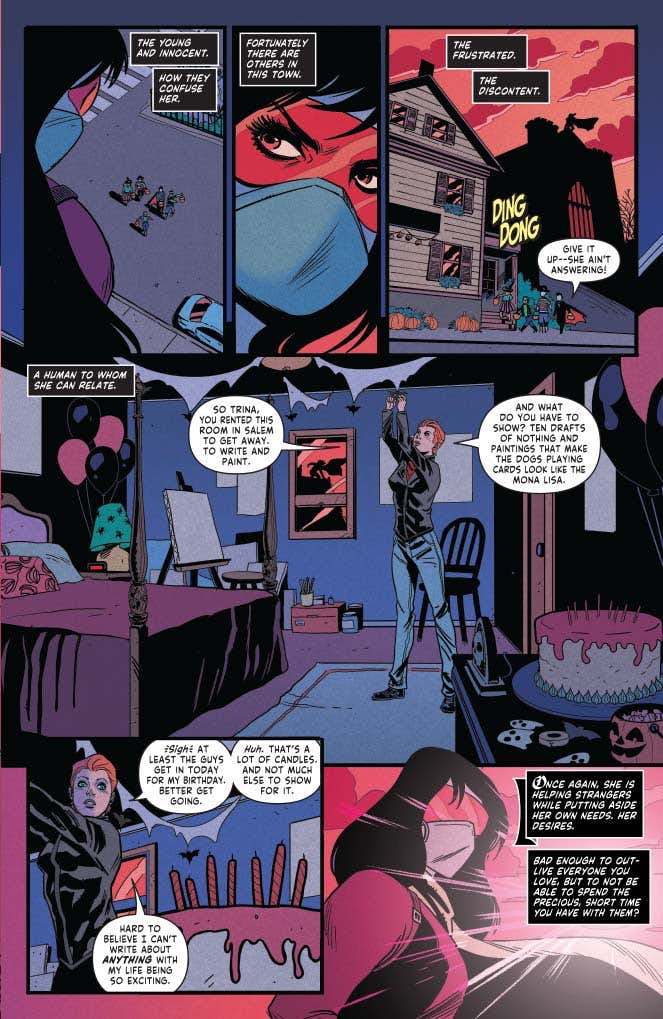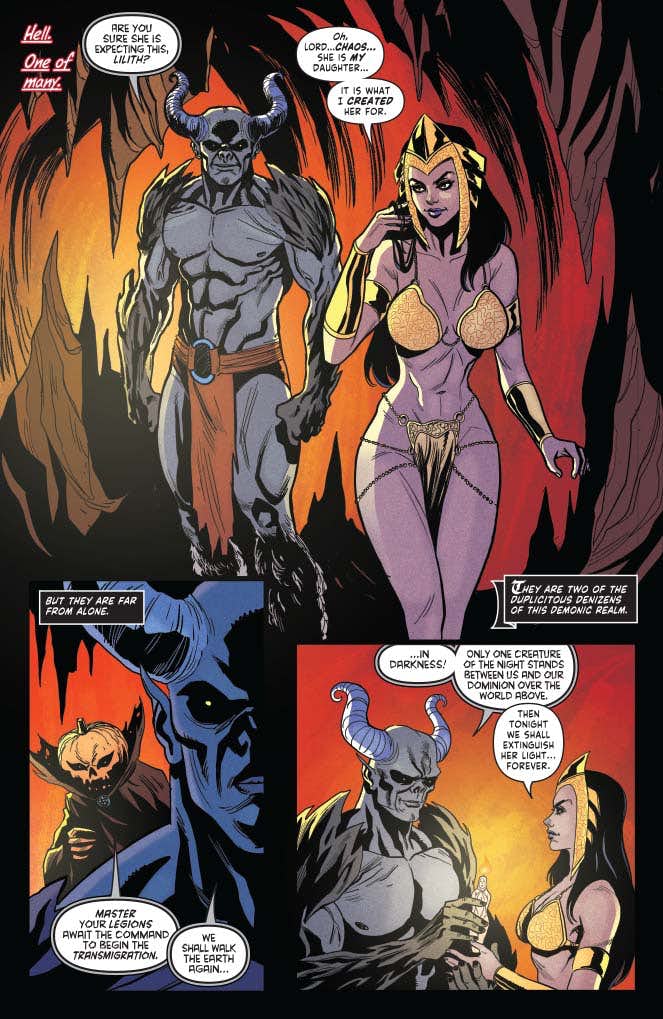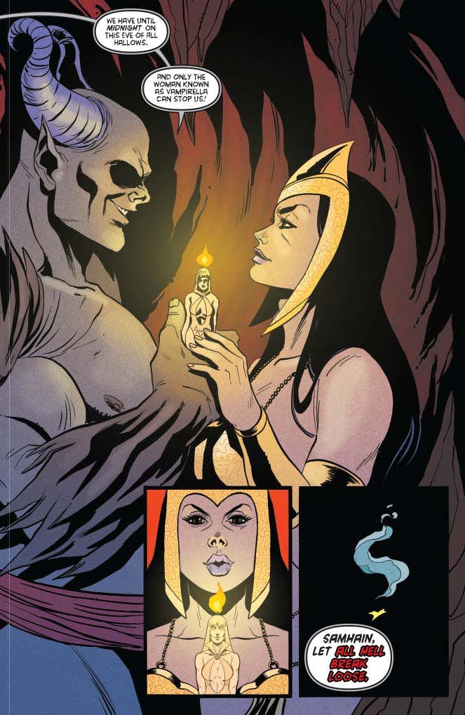 Where Vampirella comes from they don’t celebrate birthdays — so she had to choose her own. Is it any wonder she picked Halloween night? Unfortunately, her simple celebration is interrupted by — you guessed it — one of those pan-dimensional demonic invasions that often seem to take place on All Hallows Eve!