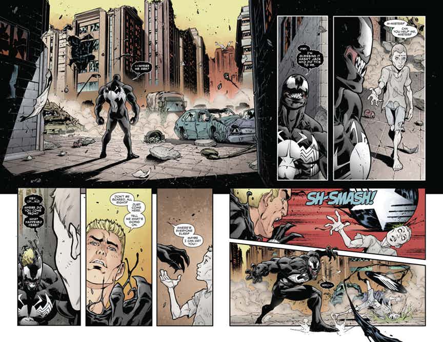 THE VENOM EPIC OF THE FALL STARTS HERE! During a routine battle with the villainous Jack O’Lantern, Venom finds himself transported to a far-off world and learns a terrible truth – a deadly new species called the Poisons has emerged from the vastness of space, and to make matters worse, they’re hunting Venoms! Trapped on the planet’s surface with a ragtag band of Venomized heroes, Eddie has no choice but to mount a counteroffensive and hope to find a way home!