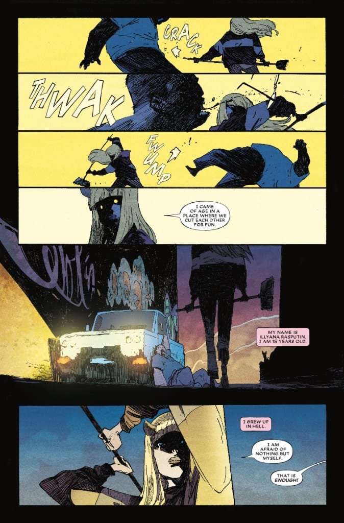 Before she was Magik, Illyana Rasputin was just a kid whom Limbo chewed up and spit out seven years older. So it’s no surprise that, at 15, she wants nothing to do with the X-Men…nothing to do with the New Mutants…and nothing to do with her own powers. It’s not even surprising that she runs away… but where — and who — she ends up? Well, that’s something you’ve never seen before.