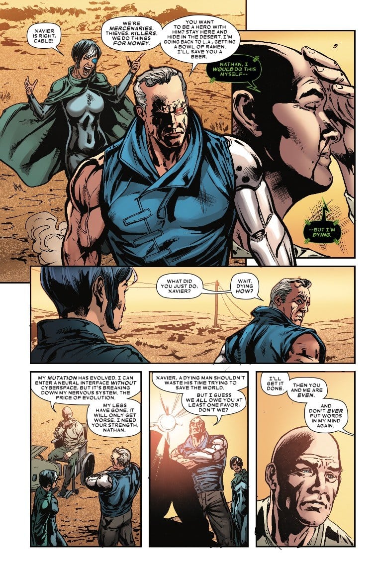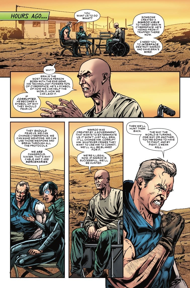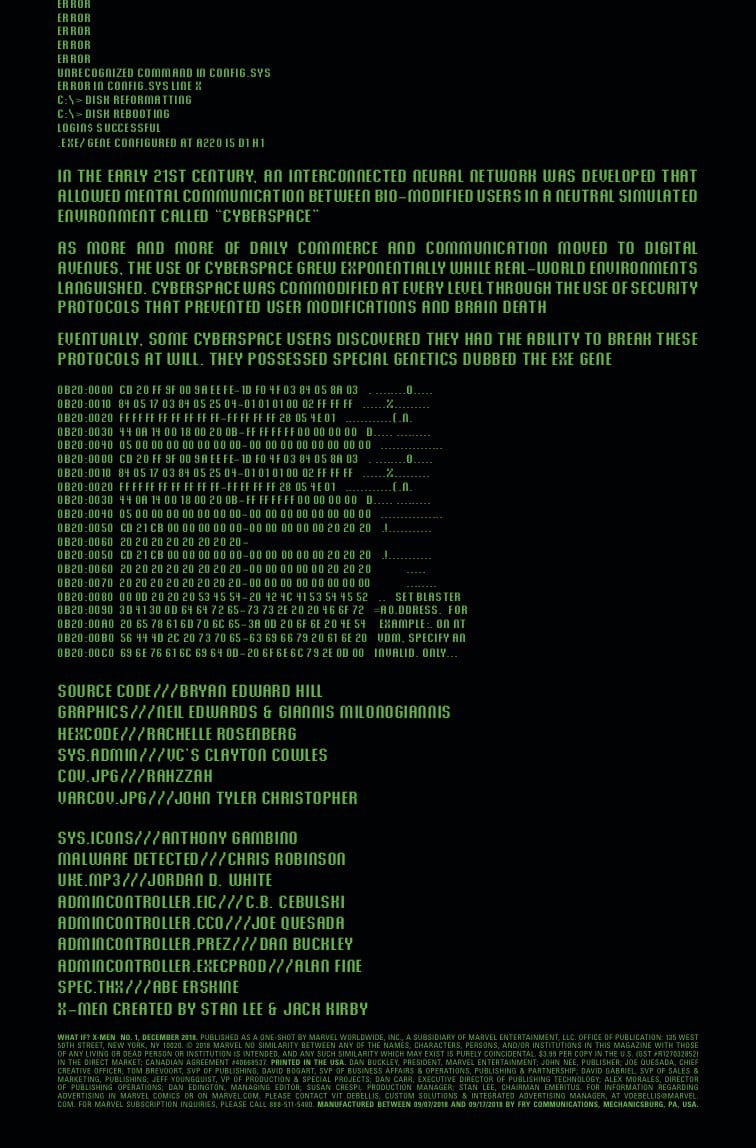 From the publisher that gave you OLD MAN LOGAN and HOUSE OF M… The X-Men as you never imagined! Welcome to the EXE/scape, a digital wonderland of business and pleasure accessible to anyone with the social (or monetary) capital for the bio-mods needed to log in… Or you can bypass all of that by being born carrying an .EXE/gene! But circumventing the login regulations is exactly what got the likes of Charles Xavier and his .EXE/men banned and driven underground in the first place… Free-roamers u/Domino and u/Cable have taken every dirty job there is on the ‘scape, but when a simple data scrubbing job turns bad, the life of bio-mod magnate Erik Lehnsherr hangs in the balance, and with it, their very society… It’s a whole new world of X-Men by Bryan Edward Hill (Detective Comics), Neil Edwards (Justice League) and Giannis Milonogiannis (Ghost in the Shell: Global Neural Network)!