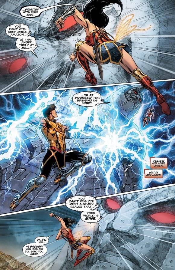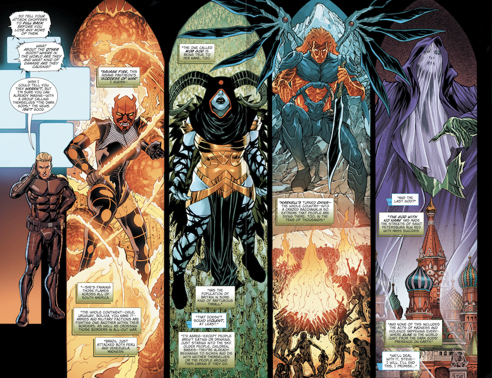 “The Dark Gods” part four! Humanity worships new masters. Its heroes have fallen. And Wonder Woman? Wonder Woman stands alone!