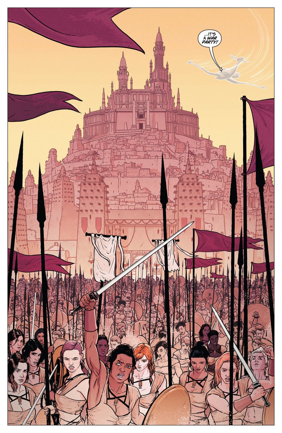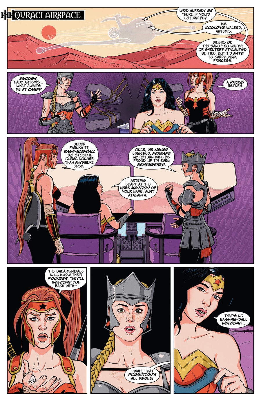Diana’s model U.N. project goes up in flames when she tries to intervene and stop the exiled Bana-Mighdall Amazons from invading the nation of Qurac under false pretenses. She clashes with Artemis, who wants her exiled sisters to go to war, despite the fact that the expat Amazons are being manipulated…by none other than the deadly Rustam, Quraci seditionist and rebel leader! Now it’s up to Wonder Woman to lasso this runaway war train before it can get up to speed—and it’s about to pull out of the station.