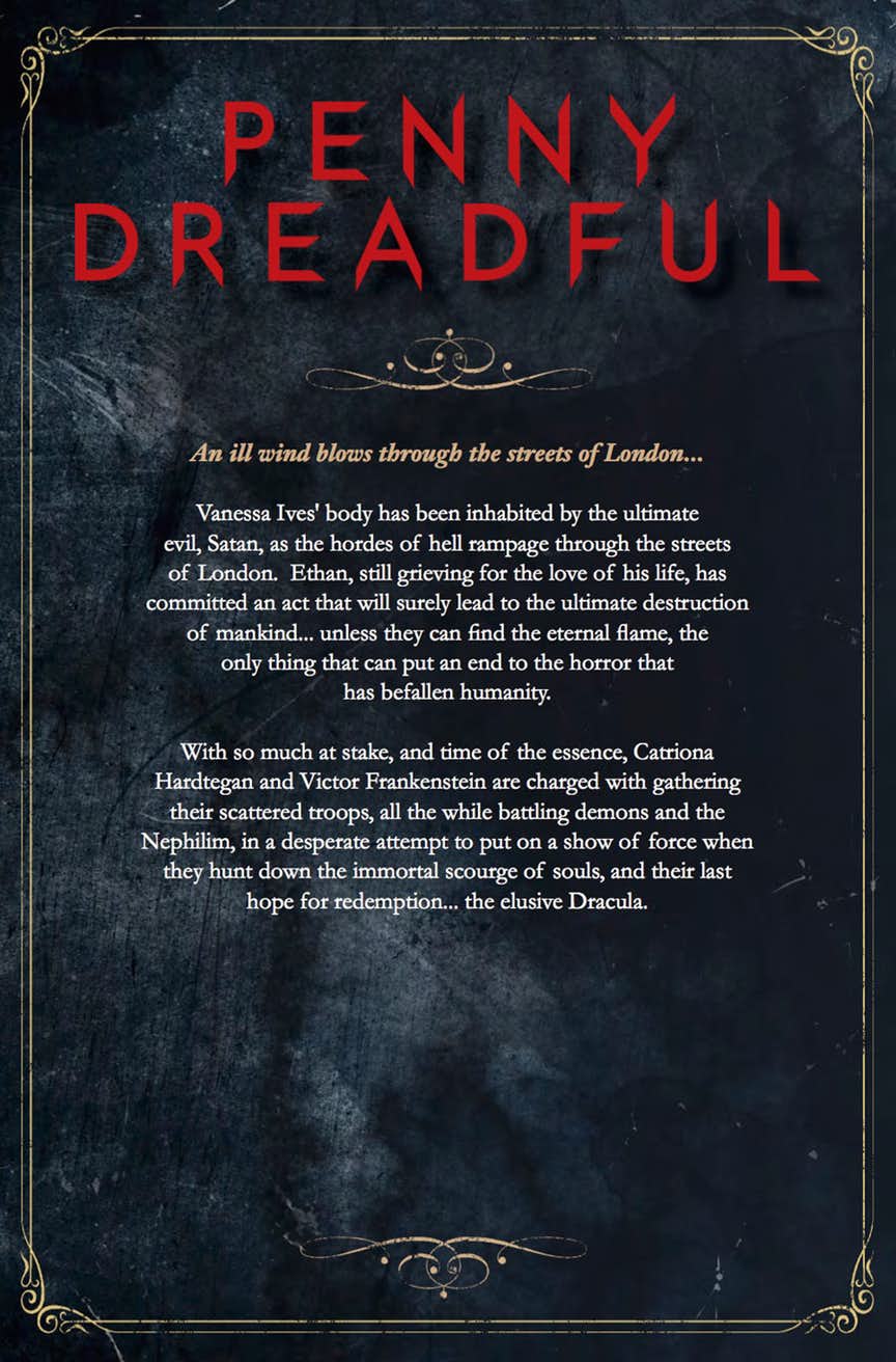 Vanessa Ives’ body has been inhabited by the ultimate evil, Satan, as the hordes of hell rampage through the streets of London. Ethan, still grieving for the love of his life, has committed an act that will surely lead to the ultimate destruction of mankind… unless they can find the eternal flame, the only thing that can put an end to the horror that has befallen humanity.