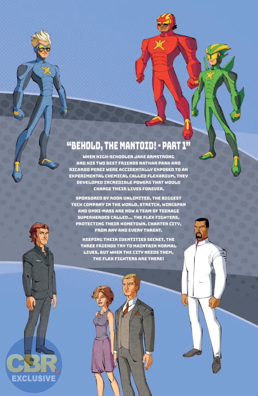 Stretch Armstrong is back! Based on the all-new Netflix animated series and inspired by the classic toy line, Stretch Armstrong and the Flex Fighters features Stretch, along with his partners Omni-Mass and Wingspan, attending high school by day and fighting crime at night in futuristic Charter City! But when they come across the monster known as The Mantoid, they have to decide whether it’s truly the threat everyone thinks it is!
