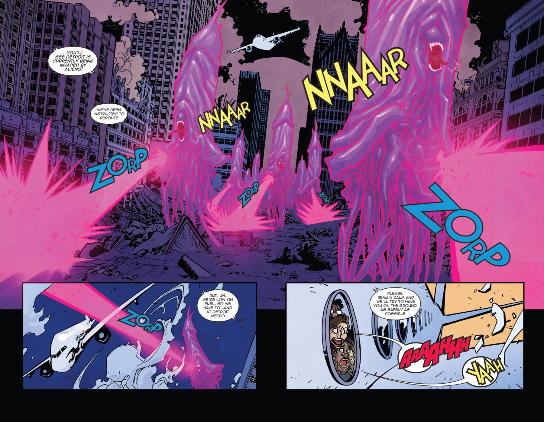 After taking the fight to the Glarkian invaders, the nasty space vampires strike back with an even deadlier all-out next level assault! Now it’s up to Katie Carva and her comic shop crew to defend Detroit from alien invasion!!