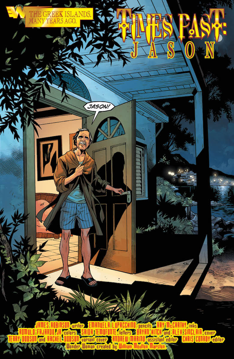 “TIMES PAST” part two! Raised on the Grecian isles, Wonder Woman’s long-hidden brother, Jason, tried to lead a simple life, running away from his birthright. But when Darkseid’s daughter, Grail, learns of his existence, will he be ready for the chaos she brings with her?
