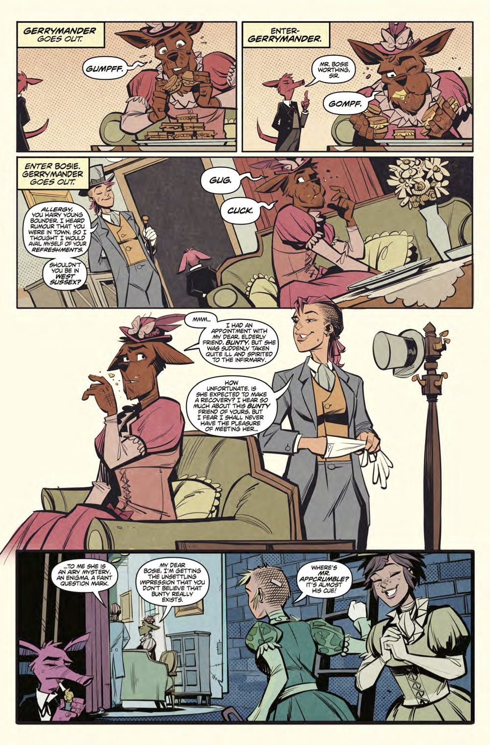 Tank Girl and the gang are back in the second installment of four brand-new, epic, stand-alone stories! The gang spend a farcical weekend at one of Jet Girls numerous stately homes. Tea is drunk, crumpets are dunked, antique dresses are worn, a secondary character dies in excruciating pain, more tea, and a startling revelation about one or more of our heroes ancestries is revealed!