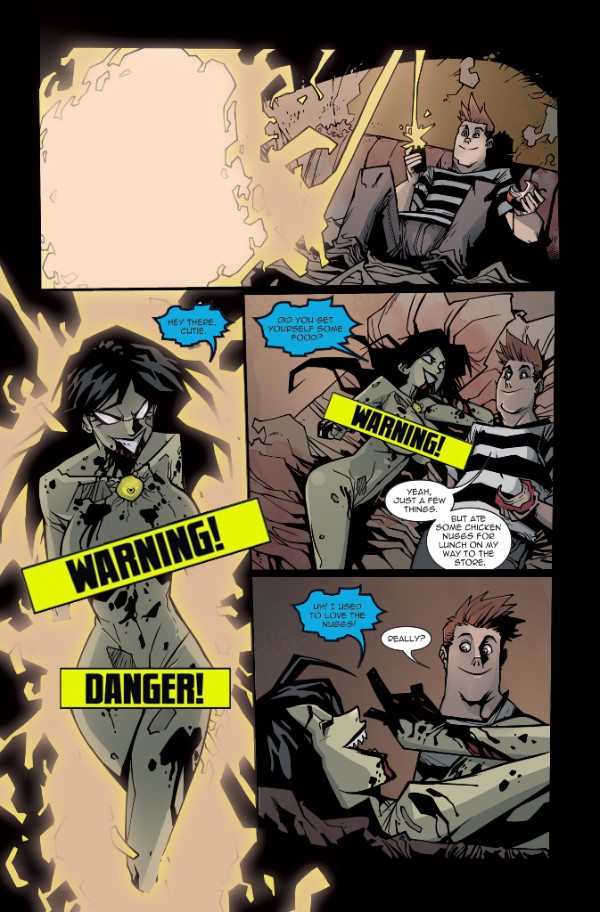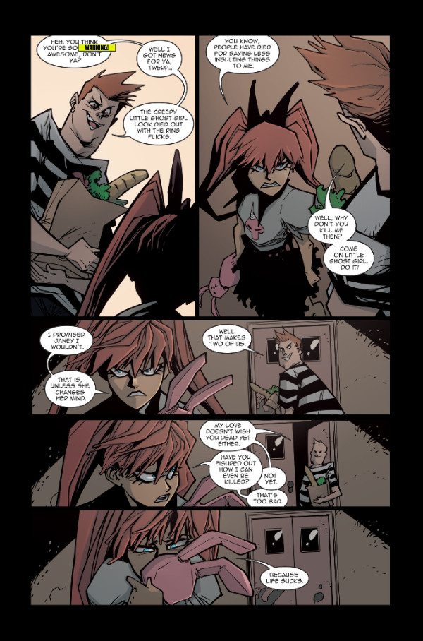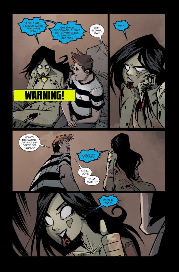 The dating site that Oscar hacks proves useful in fulfilling Janey’s ever-growing hunger for carnage. But it also puts her one step closer to… The Death of Zombie Tramp!