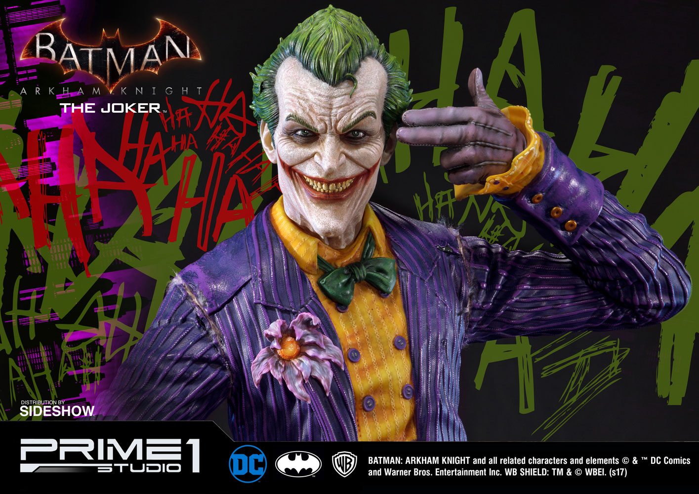Sideshow and Prime 1 Studio are proud to present The Joker from Batman: Arkham Knight. The Joker was an insane, homicidal supervillain, and the arch nemesis of Batman. His white skin, green hair and blood red lips belied the chaotic nature that underlay his cartoonish appearance. The extremely intelligent self-styled “Clown Prince of Crime” had no superpowers beyond a capacity for incredible violence and a skill at creating deadly mayhem, and frequently concocted elaborate schemes to entrap his nemesis. He serves as the main antagonist of Arkham Origins and Arkham Asylum, is one of the main antagonists of Arkham City, is one of the prominent antagonists of Arkham Knight, and can be considered the central antagonist of the Arkham series overall.