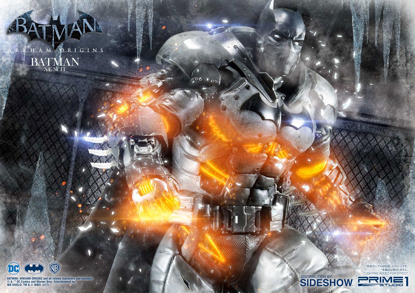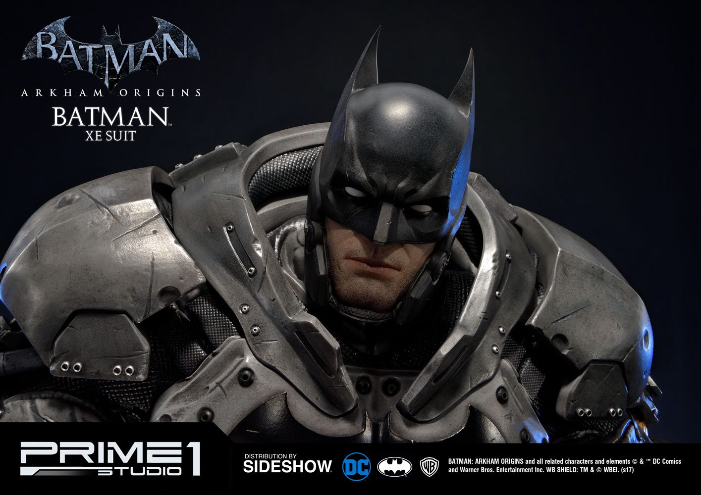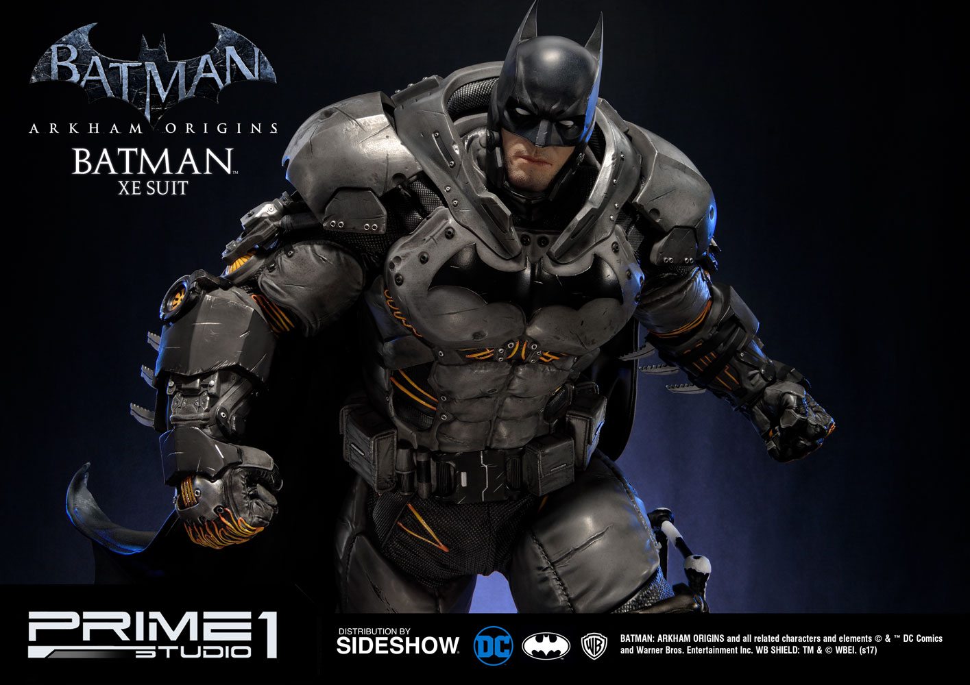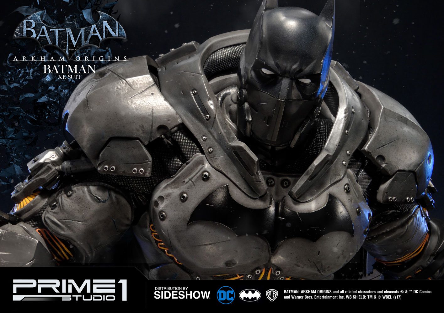 Sideshow and Prime 1 Studio are proud to present the Batman Extreme Environment Suit from Batman: Arkham Origins (Cold, Cold Heart DLC). Batman started out using the Arkham Origins Batsuit but switched to the XE Suit after he realized that he needed a more armored Batsuit to take on the likes of Mister Freeze. It had heating on some of the areas of the suit, it was armed with Thermal Gloves. This special version of his Batsuit not only offered him greater protection but also allowed him to take Mr. Freeze head on as the suit was able to withstand the extreme temperature and break the ice he was able to create. A perfect duo for with the Mr. Freeze from Batman: Arkham Origins.