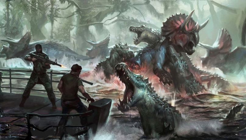 “I was captivated by the imagery surrounding Ethan’s book and the story it told,” said Sparke. “I’ve worked hard on capturing that essence but also the grittiness, horror aspects and military edge. My vision is to feel like the characters have walked out of the film Platoon and into the jaws of the greatest predators the planet has ever known.”