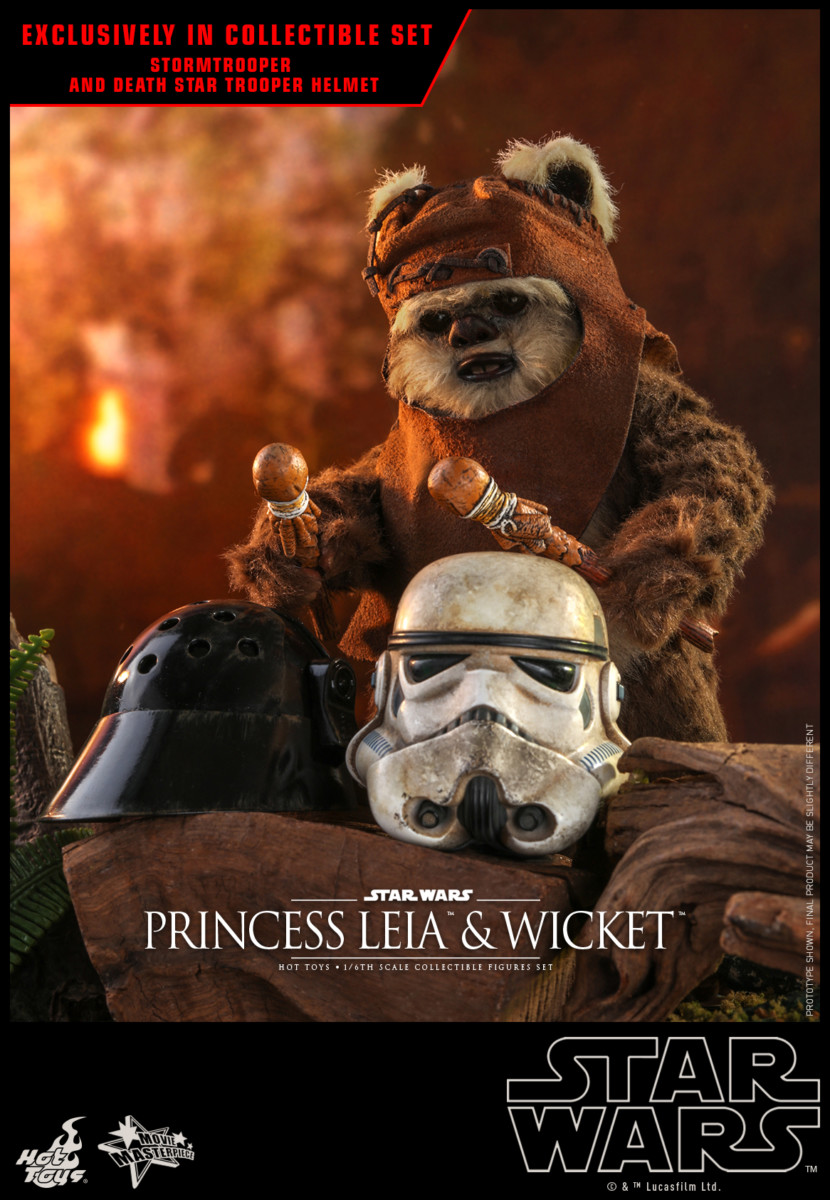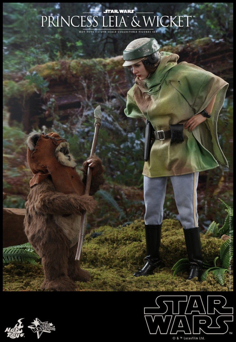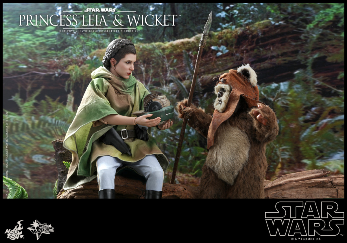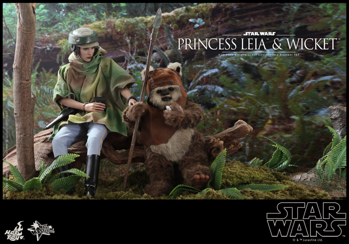 Hot Toys is delighted to present a special 1/6th scale collectible figures set featuring Princess Leia in her outfit on Endor and Wicket the Ewok for all Star Wars fanatics!