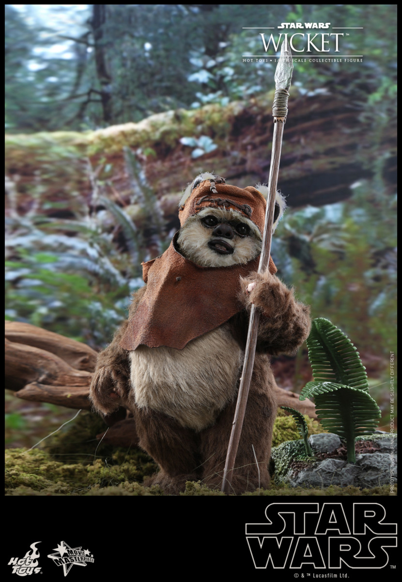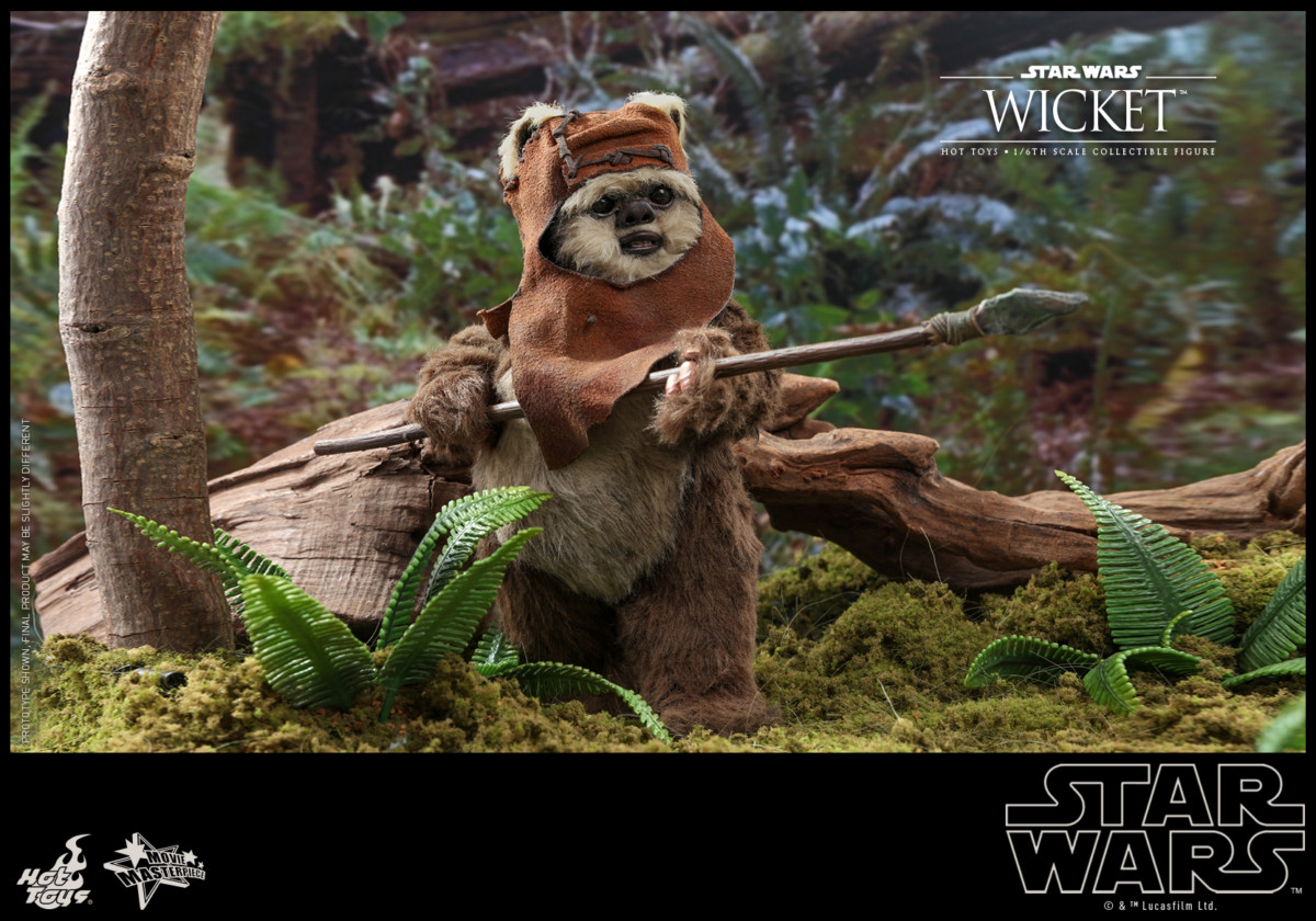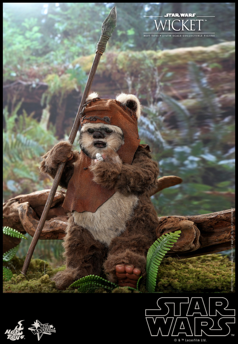 Hot Toys is pleased to officially introduce the new 1/6th scale collectible figure of Wicket the Ewok! Skillfully crafted with great details, the Wicket collectible figure features a highly detailed face sculpture, newly developed multiple layers of fabric hair with various shades of white and brown throughout whole body capturing Ewok’s unique appearance, a spear, drumsticks, a variety of hands, diorama accessory and an Endor themed figure base.