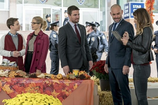 OLIVER AND FELICITY CELEBRATE THANKSGIVING WITH WILLIAM — Oliver (Stephen Amell) celebrates Thanksgiving with his family but the happy moment is interrupted. Meanwhile, Black Siren (Katie Cassidy) returns to wreak havoc on the holiday.