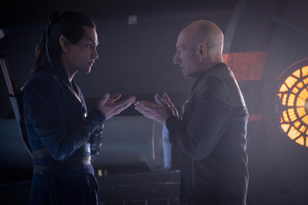 The crew’s journey to Freecloud takes a detour when Picard orders a stop at the planet Vashti, where Picard and Raffi relocated Romulan refugees 14 years earlier. Upon arrival, Picard reunites with Elnor (Evan Evagora), a young Romulan he befriended during the relocation. Meanwhile, Narek continues his attempts to learn more about Soji while Narissa’s impatience with his lack of progress grows.