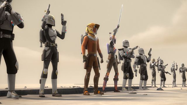Sabine leads Ezra, Kanan and an army of her fellow Mandalorians back to her home world to rescue her father from the clutches of the Empire.