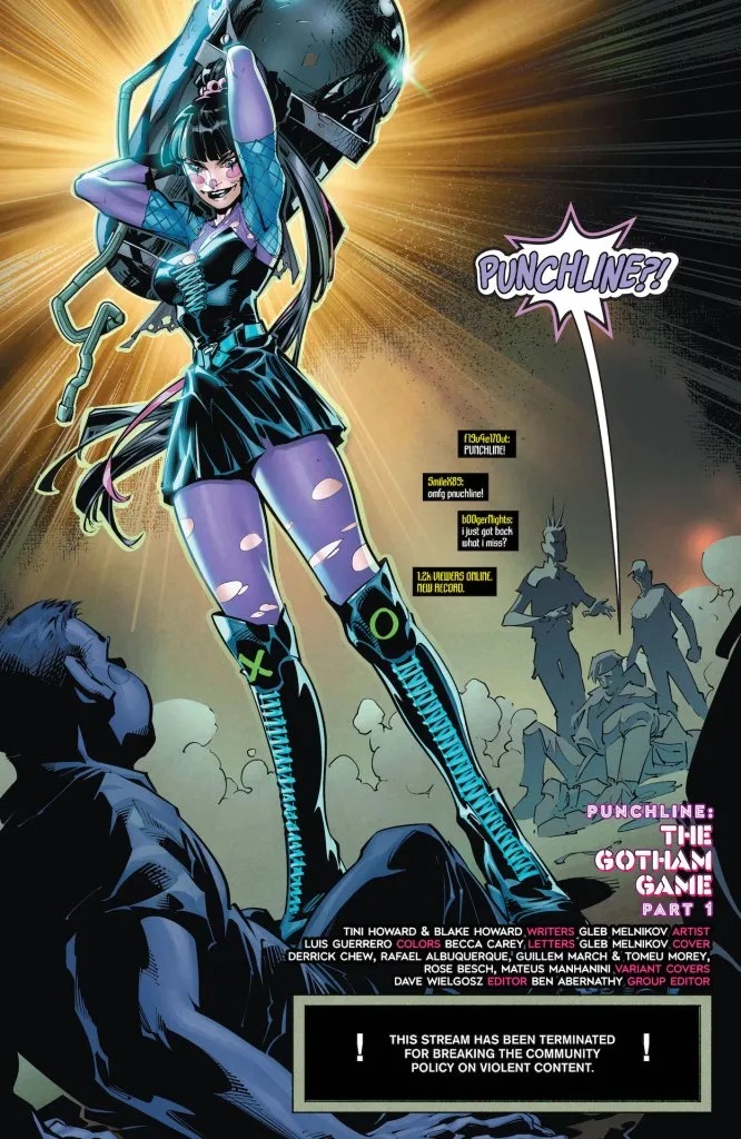 THE NEW QUEEN OF CRIME! Punchline is out of jail and back on the streets of Gotham City. She’s not coming back for some of what Gotham has to offer, she’s coming back for all of it. She wants to be the queen of crime, and with the help of her Royal Flush Gang, no one will stand in her way. But Punchline created a lot of angry enemies in Gotham before she was incarcerated, and they all want payback. Presenting a miniseries that will redefine the criminal landscape of Gotham City from the superstar creative team of Tini Howard (Catwoman, Knights of X), Blake Howard (Batman: Urban Legends), and Gleb Melnikov (Robin, Wonder Woman)!