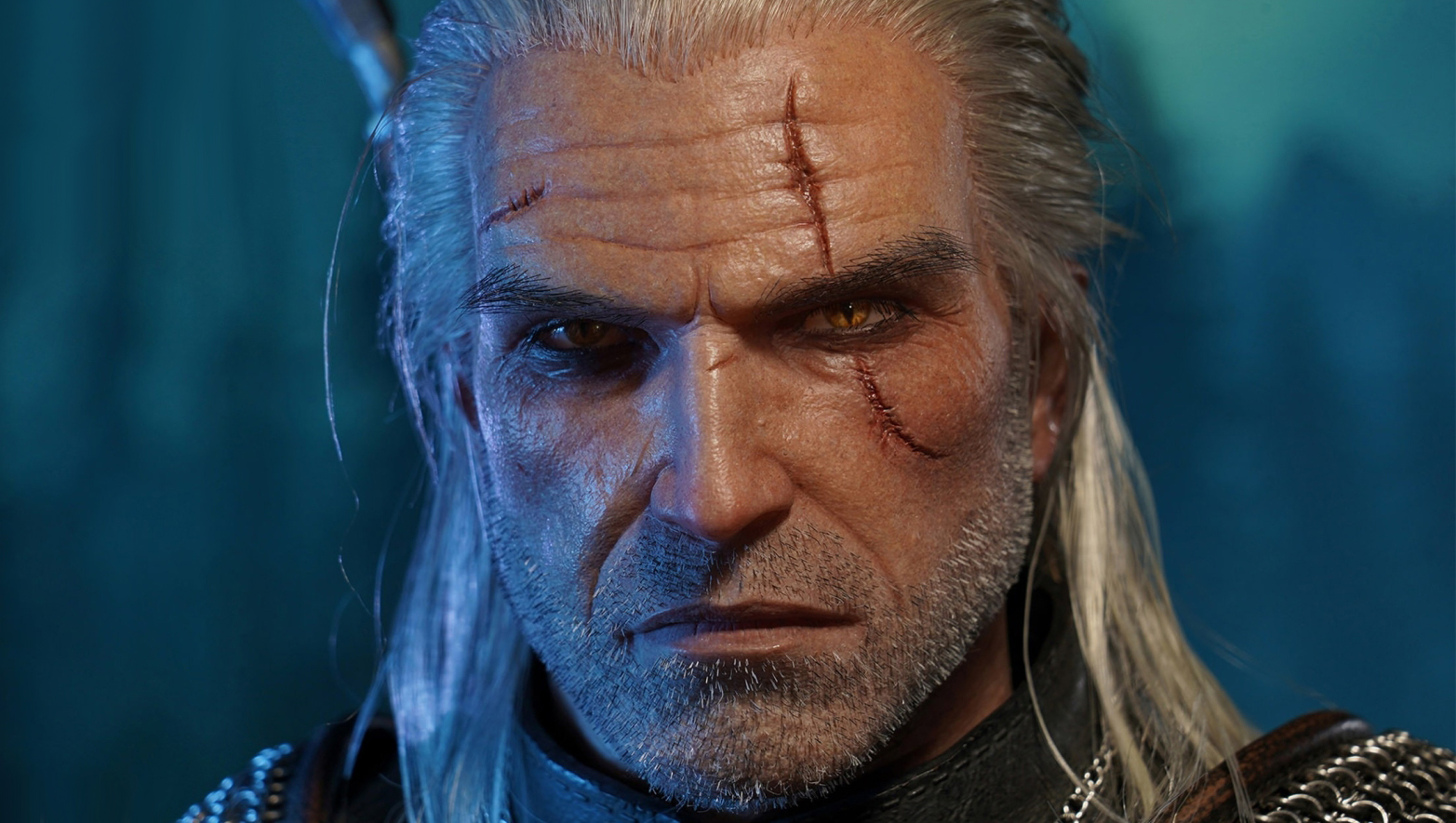 Geralt is holding in one hand a freshly decapitated fiend’s head and his iconic Wolven silver sword in the other. The impressive mixed media 1:2 scale statue features individually punched facial and head hair, glass eyes and realistic silicone skin. The Kaer Morhen armor is made of premium leather, real chainmail and real metal Wolven swords set.