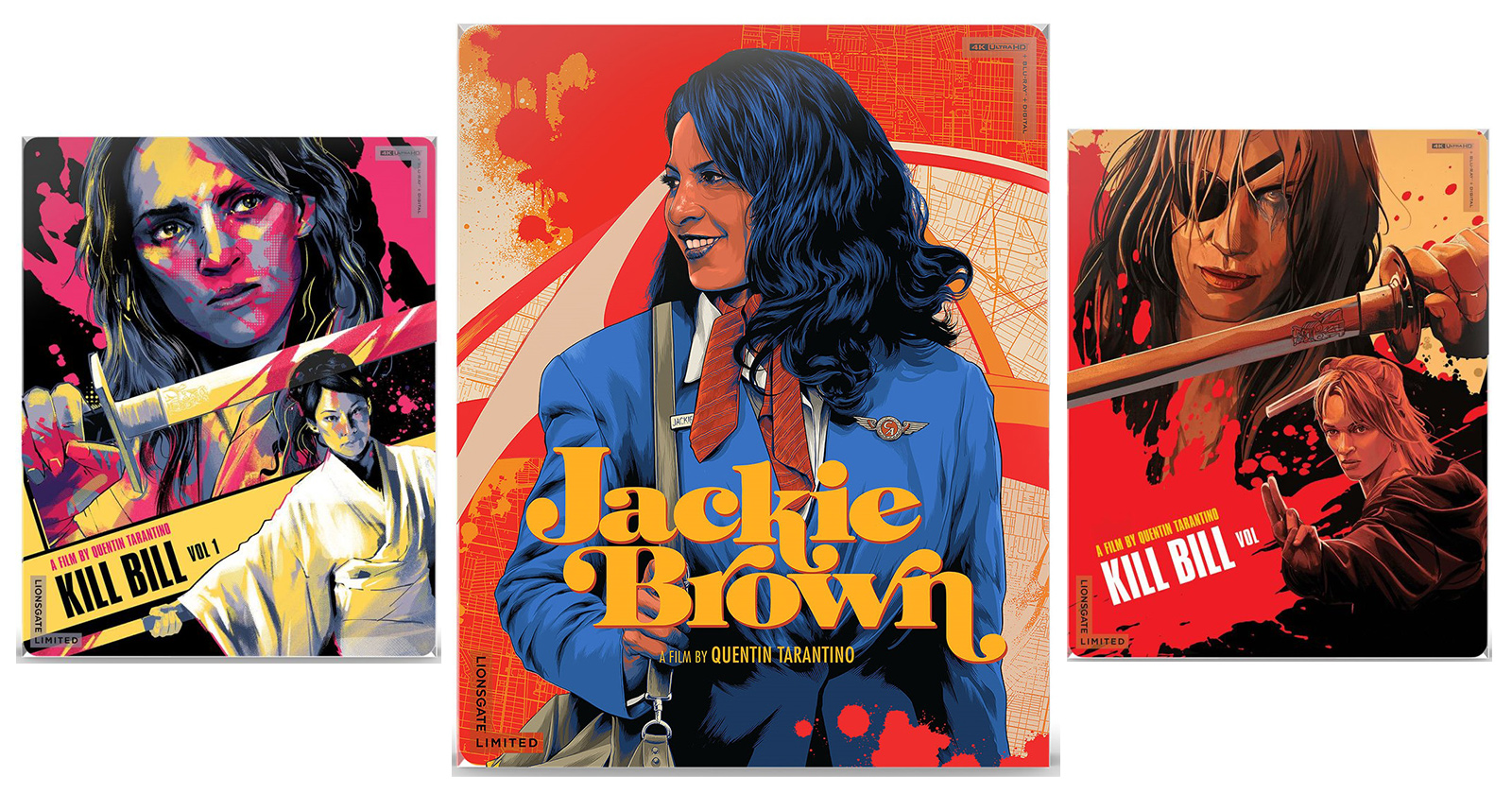 Lionsgate has announced that Quentin Tarantino’s Jackie Brown and Kill Bill Volume 1 and Kill Bill Volume 2 are coming to 4K Ultra HD for the first time on January 21st, along with limited edition collectible steelbook releases alongside a reprint of his 1992 debut Reservoir Dogs; check out the cover artwork and details below…