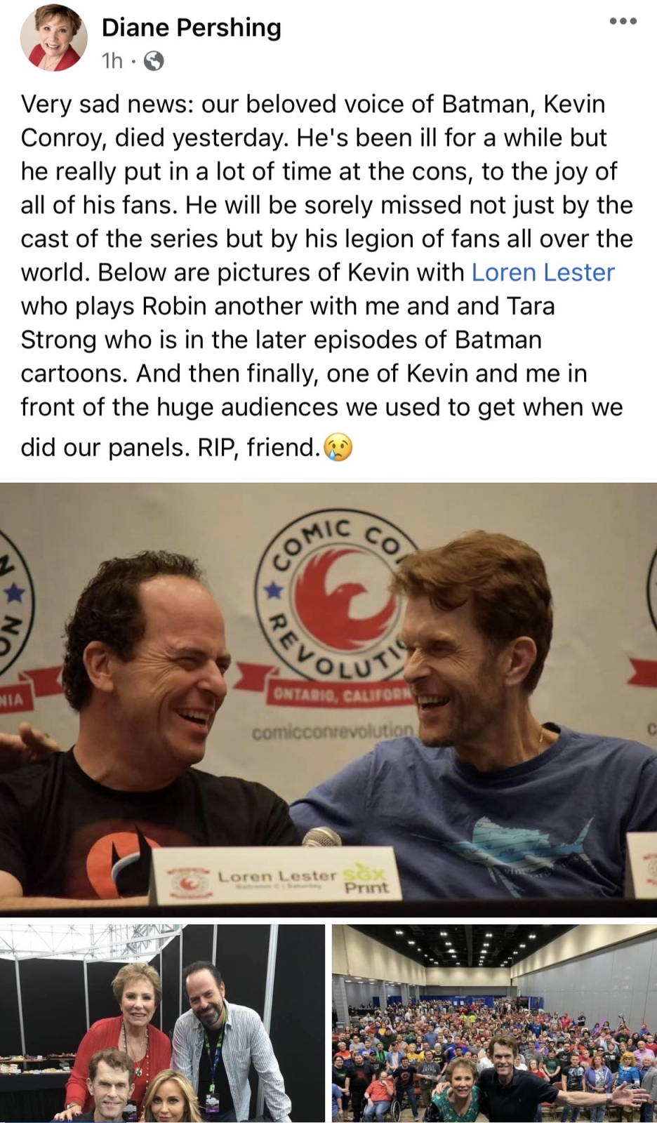 “Kevin brought a light with him everywhere, whether in the recording booth giving it his all, or feeding first responders during 9/11, or making sure every fan who ever waited for him had a moment with their Batman,” Dini said. “A hero in every sense of the word. Irreplaceable. Eternal.”