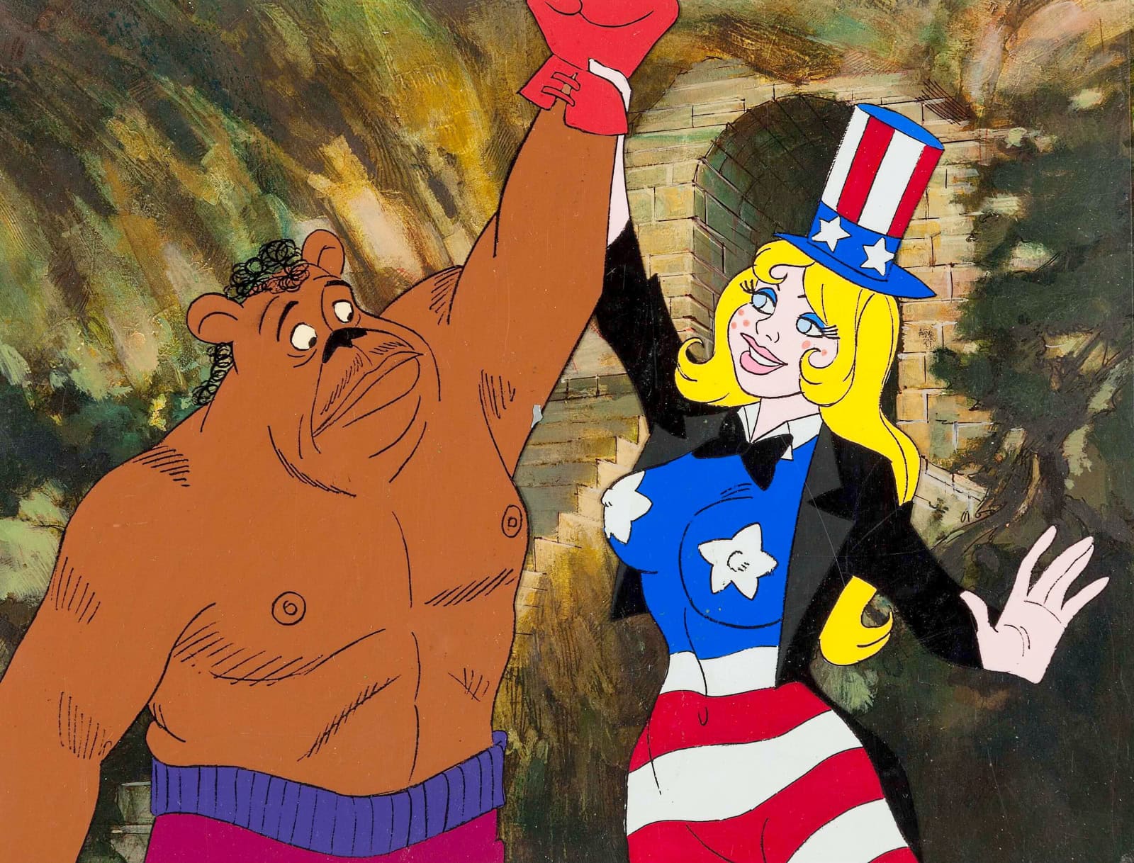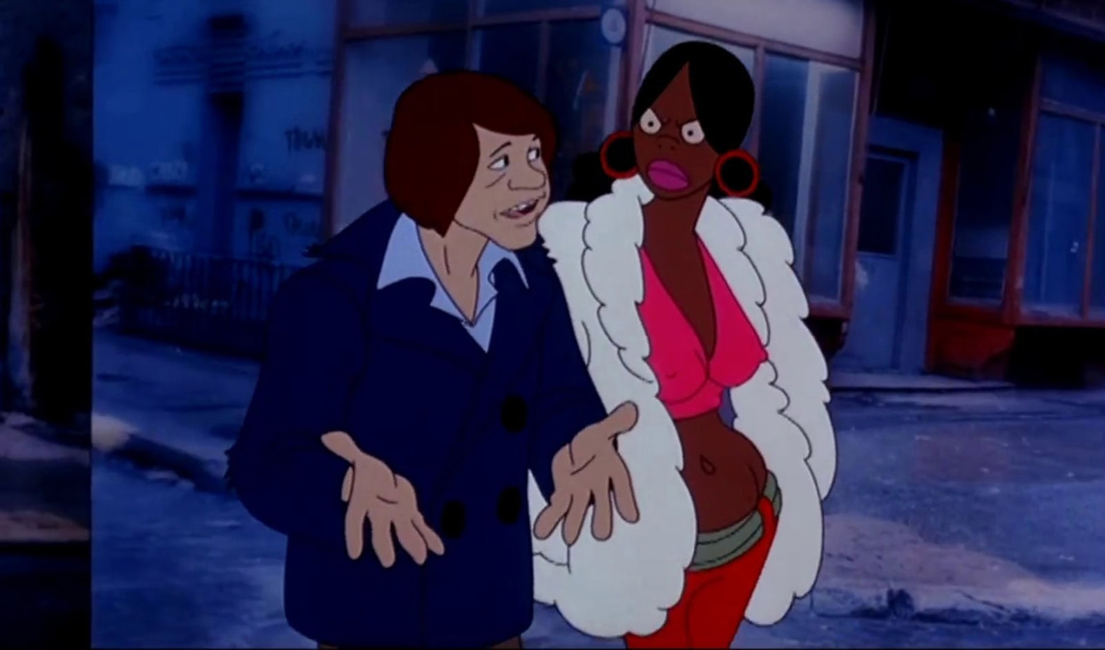 Taking Hollywood’s ugly history of racist imagery and gleefully putting it under a microscope, Coonskin represents Bakshi’s attempt to satirise both the ugliness but also the stupidity of racial and sexual stereotyping. Black, Jewish, Italian, gay,  and redneck stereotypes are all depicted throughout the movie but in a completely exaggerated manner adopted by Bakshi to show the audience the inherent ridiculousness of bigotry. Behind the scenes, Bakshi hired several black animators including Brenda Banks, one of the first black women to ever work as a professional animator and a number of graffiti artists, who Bakshi had met via research trips around New York, training them in transferring their talent to animation.
