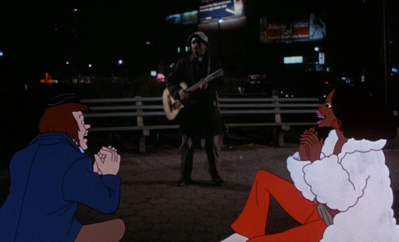 Mixing live action stock footage, paintings (e.g. Edward Hopper’s Nighthawks) and combining real backgrounds with animation, instead of simply tracing them over as he had done with Fritz The Cat, gave Heavy Traffic an unmistakeable look that sets it apart from much of its contemporaries.