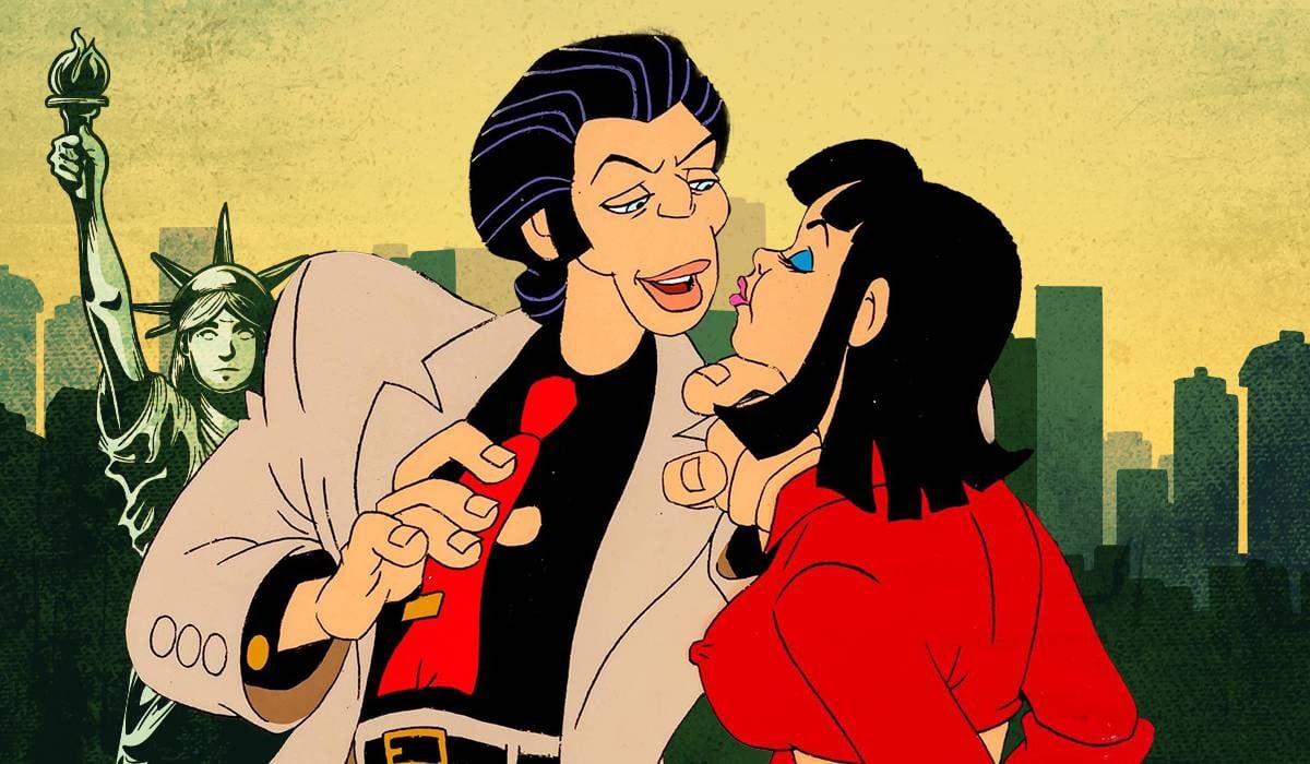 Attempts to film adaptations of novels as diverse as Fear And Loathing In Las Vegas, The Fan Man, The Worm Ouroboros, Maggie: A Girl Of The Streets, Mickey Spillane’s Mike Hammer books, and The Catcher In The Rye all frustratingly fell through at varying stages of development. In this period Bakshi produced a comic strip entitled JunkTown, worked on music videos, such as providing background animation for The Rolling Stones’s Harlem Shuffle cover music video, and returned back to where he started in TV, working on The New Adventures Of Mighty Mouse and an anthology mini series titled This Ain’t Bebop.