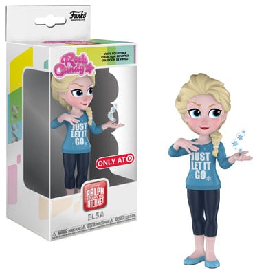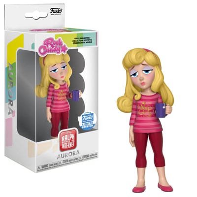 The Disney princesses are crashing Ralph and Vanellope’s adventures. Mulan looks casual but daring in her jeans and jacket with a sword draped casually over her shoulder.  Moana’s ready for an adventure in shorts and a shirt. Jasmine’s got a magic lamp and she isn’t afraid to use it. Belle’s got her face in a book, as per usual. Ariel sings  to her heart’s content. And Rapunzel can’t contain her long hair beneath a hoodie despite her best efforts. Tiana’s taking a break from running Tiana’s Palace for an adventure with Prince Naveen. Rock Candy Snow White has an apple in hand and is a Specialty Series exclusive. Elsa’s holding some snowflakes and looking determined in a Just Let It Go sweater as a Target exclusive. Anna’s got her hands on a sandwich and looks pleased with herself, sharing Target exclusive status with her big sister. Aurora’s looking sleepy with a Nap Queen shirt and a cup of tea as a Funko Shop Limited Edition exclusive.