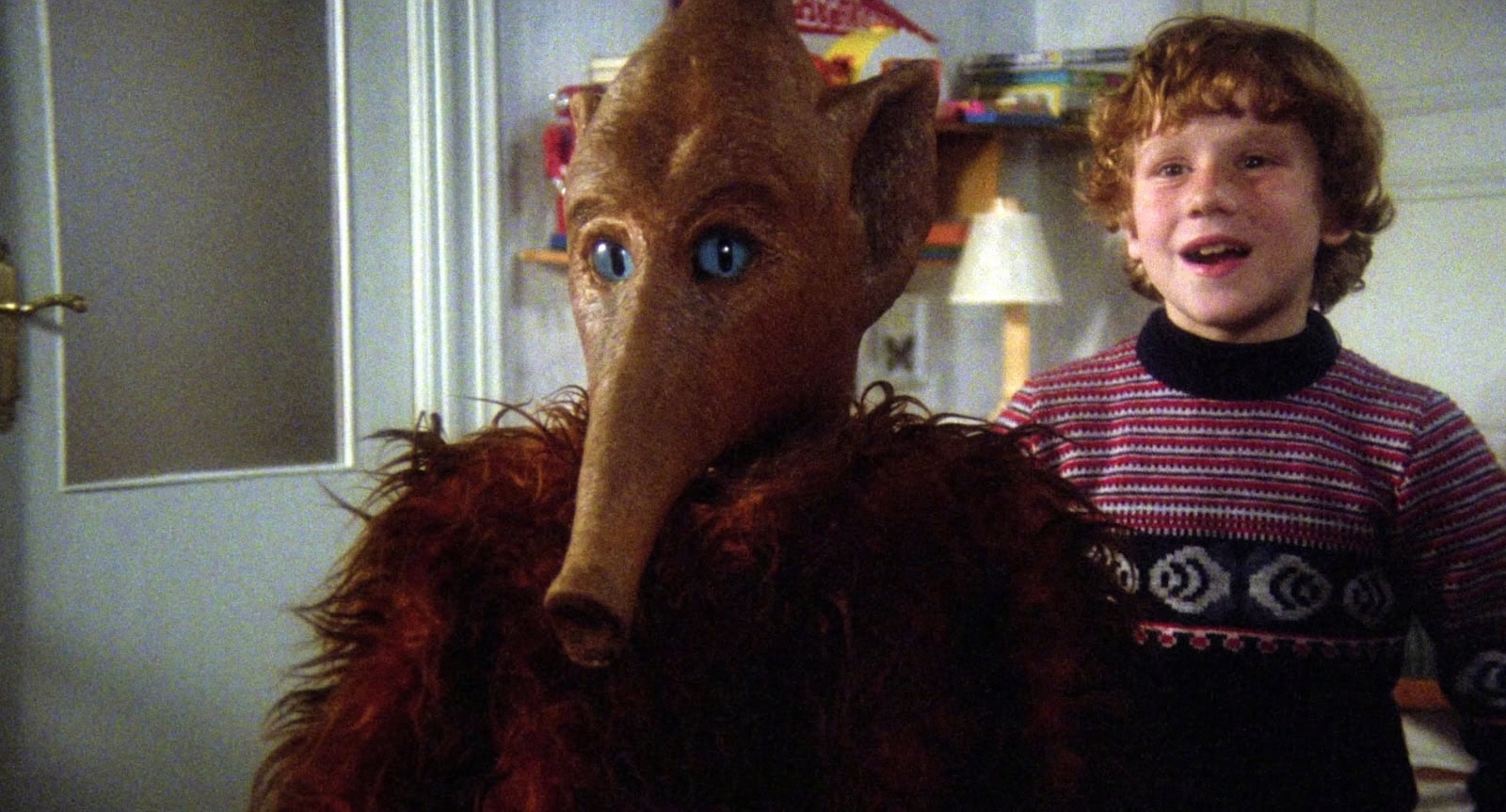 The E.T.-like part revolves around a boy (Óscar Martín’s Tommy), who discovers an egg one night before bringing it home and names the baby creature Trumpy after it hatches. The Trumpy in question is an alien with an anteater-like snout capable of sucking milk and peanuts in large quantities. The movie is pretty much a mess, with the dubbing sounds mostly off-putting while there’s little chemistry to be seen between Tommy and Trumpy. The movie was subsequently re-titled Pod People upon rediscovery in 1991.