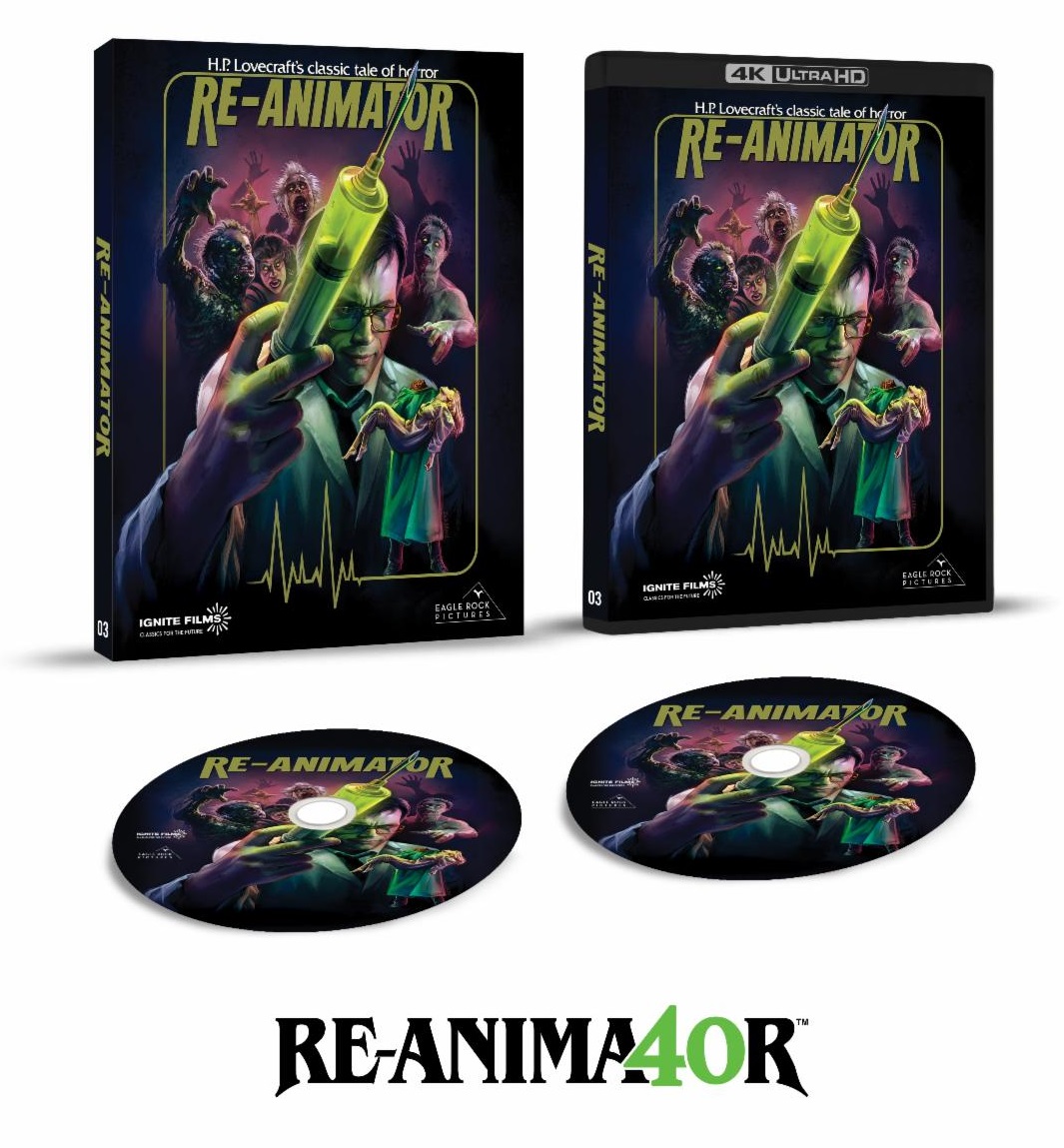 Ignite Films and Eagle Rock Pictures have announced a newly restored 4K Ultra HD and Blu-ray release of Stuart Gordon’s 1985 cult classic Re-Animator in celebration of its 40th anniversary. Check out the cover artwork, details and trailer below…