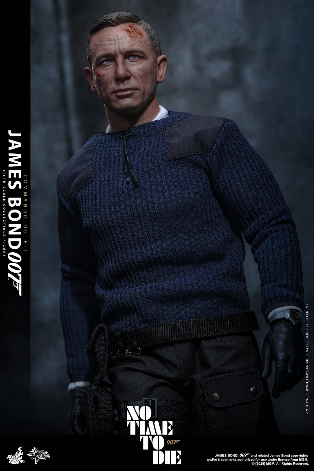 Hot Toys proudly presents the 1/6th scale James Bond (Commando Outfit) Collectible Figure, capturing Daniel Craig’s bold and battle-worn look in this key scene. The figure features a highly detailed head sculpt with separate rolling eyeballs and battle-damage details, perfectly reflecting Bond’s steely determination in the face of overwhelming odds. Bond is dressed in his full commando gear, including a ribbed army sweater layered over a blood-stained Henley shirt, held in place by braces. A utility belt with pouch, dual thigh straps with holsters, combat trousers, and tactical boots completes the look, he’s ready for his last mission.