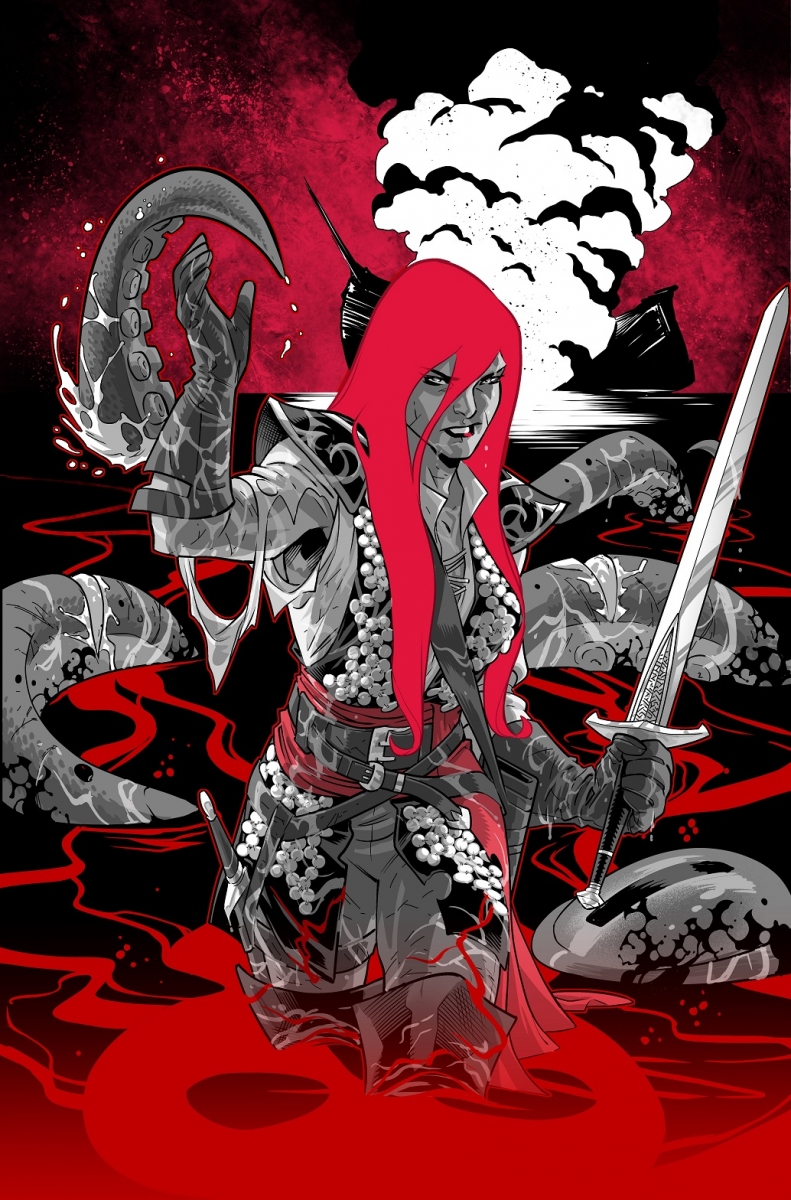 Red Sonja: Black, White, Red was created with the mission to recruit the industry’s finest creators to contribute their own personal, definitive, and boundary-pushing tales of the heroine of Hyrkania. All presented in a stark three color palette to accentuate the talents of all involved, boiling down to the raw power of comic book art and storytelling. Red Sonja will stand against fearsome foes, intimidating challenges, and more, as her fiery red hair flows on the page and her sword rends blood from her enemies.