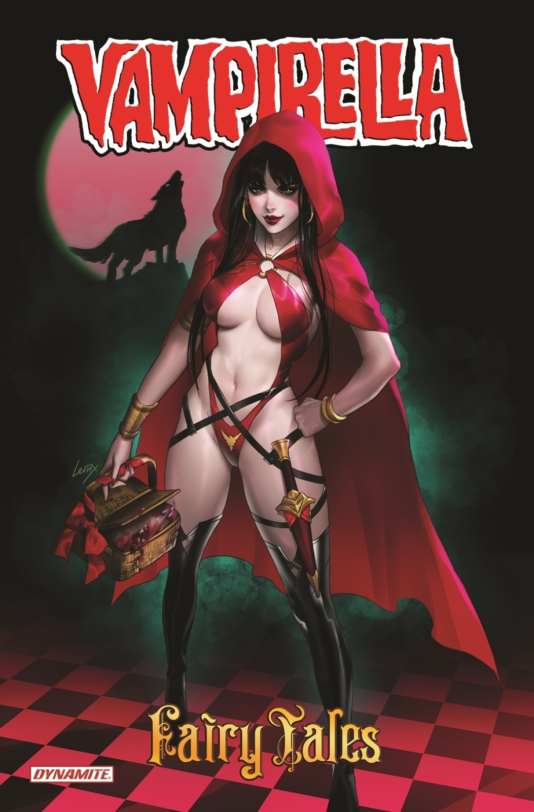 Vampirella gets an extra accessory for her iconic costume, as she rocks a famous red hooded cape. With story by Soo Lee, Vampirella is off to deliver wine and cake to her beloved grandmother. A horrid, fanged beast stalks the woods, hunting easy prey. Little do they know their prospective victim has her very own fangs!