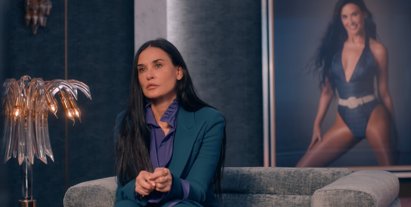 A good while after things have disastrously spiraled out of control between forgotten Hollywood star Elisabeth Sparkle (Demi Moore) and her younger, prettier, popular clone Sue (Margaret Qualley), in which they each take turns living seven days at a time (such are the rules of the titular black-market drug), the former has reached her mental breaking point for a variety of reasons, but chooses to continue the experiment while uttering to that younger self the hauntingly depressing and sad-but-true words (depending on how cynical you are about society) “you’re the only part of me that people love.”