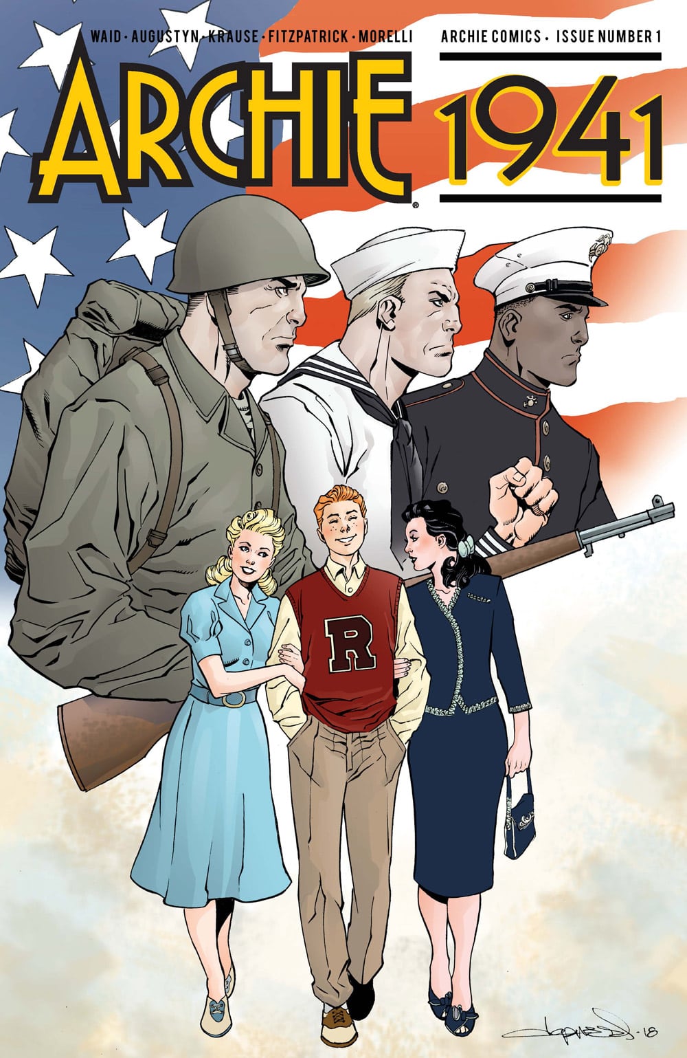 THE HISTORIC, GROUND-BREAKING MINI-SERIES STARTS HERE! Archie has been around for over 75 years and has been through many significant moments in time, but never before have we seen the characters take on real-world events as they unfold. WWII is looming and Archie and many young men from Riverdale are close to enlistment age. If you’re a Riverdale teen, how would you cope with a looming world-changing event? Join the writing team of MARK WAID and BRIAN AUGUSTYN along with artist PETER KRAUSE for the all-new mini-series that is sure to have everyone talking!