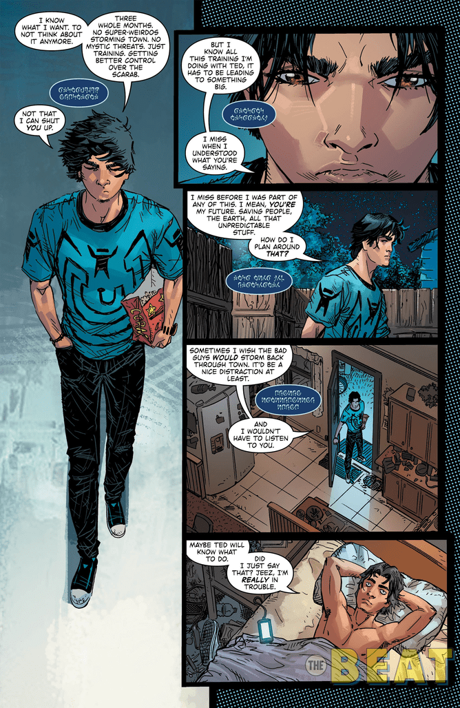 The new story arc ‘Road to Nowhere’ kicks off in Blue Beetle #14 this Wednesday, and you can take a look at a preview of the issue here courtesy of DC Comics…