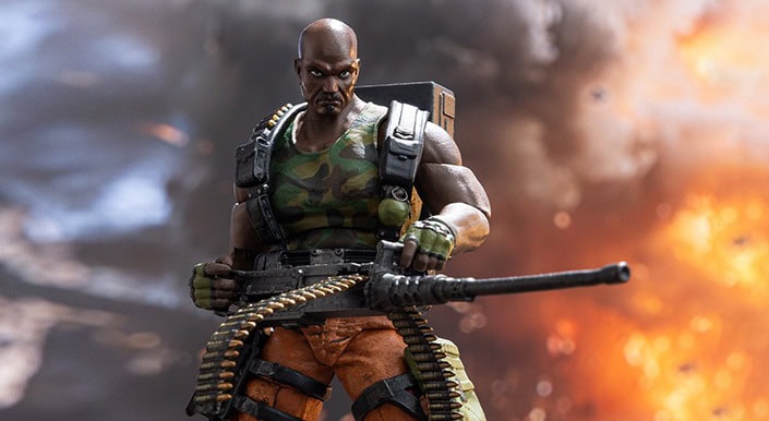 In terms of accessories, Roadblock is equipped with heavy machine gun, ammo belt, ammo box, pistol, combat knife, and 2x interchangeable hands for enhanced playability. Featuring multiple articulated joints, the highly posable body design allows collectors to recreate a wide range of combat stances, from firing positions to heavy suppressive fire stances.